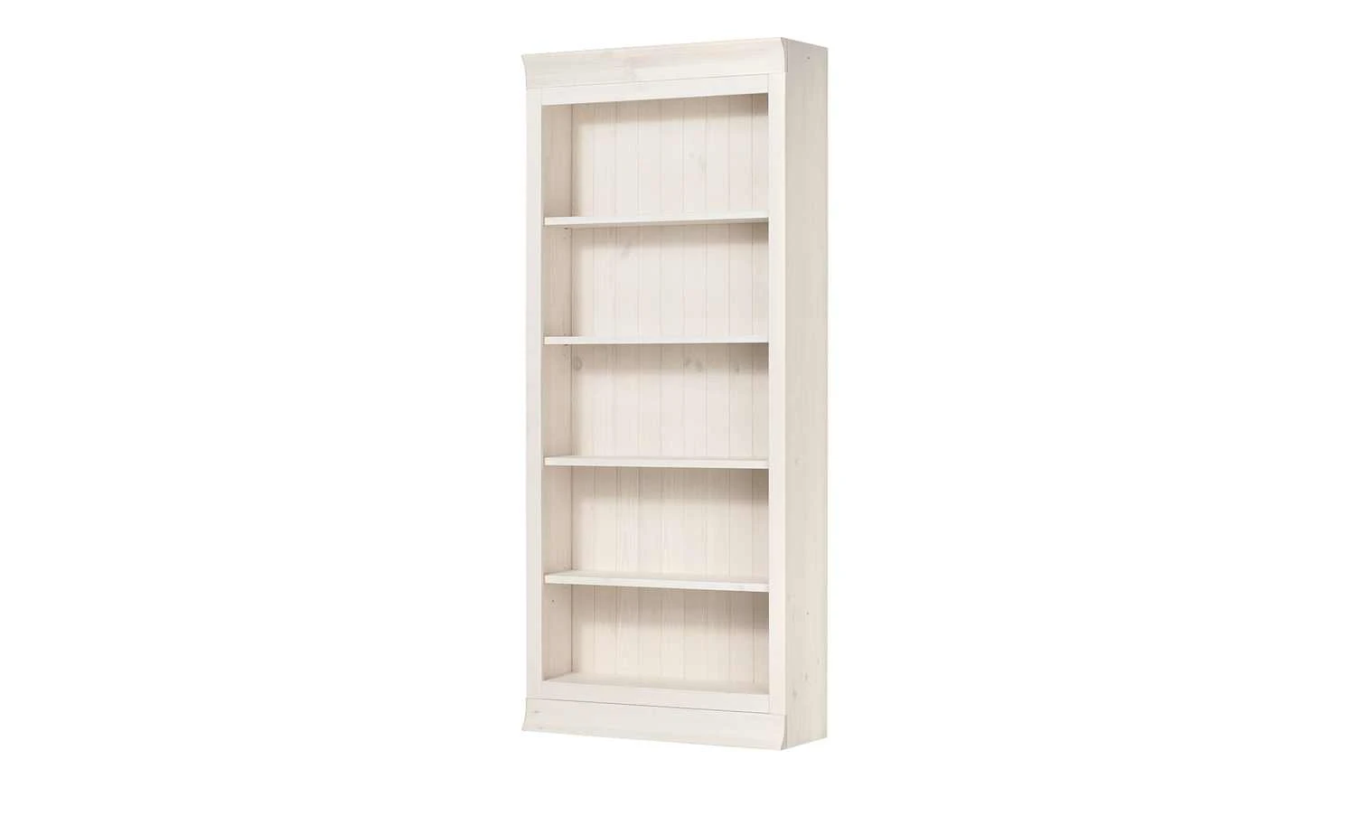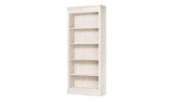 Das hohe Bücherregal im Landhauslook besticht durch seinen reizenden Charme und einer rustikalen Note. Es besitzt eine Rückwand aus vertikalen Brettern, deren Struktur und Maserung gut sichtbar ist. Auch die Seitenwände und der obere und untere Abschluss bestehen aus massivem Kiefernholz. Vier Einlegeböden unterteilen das Regal in fünf Fächer. Ideal für Bücher oder Deko. Das Regal kann mit dem Grundregal Bornholm zu einer Bücherwand kombiniert werden.
