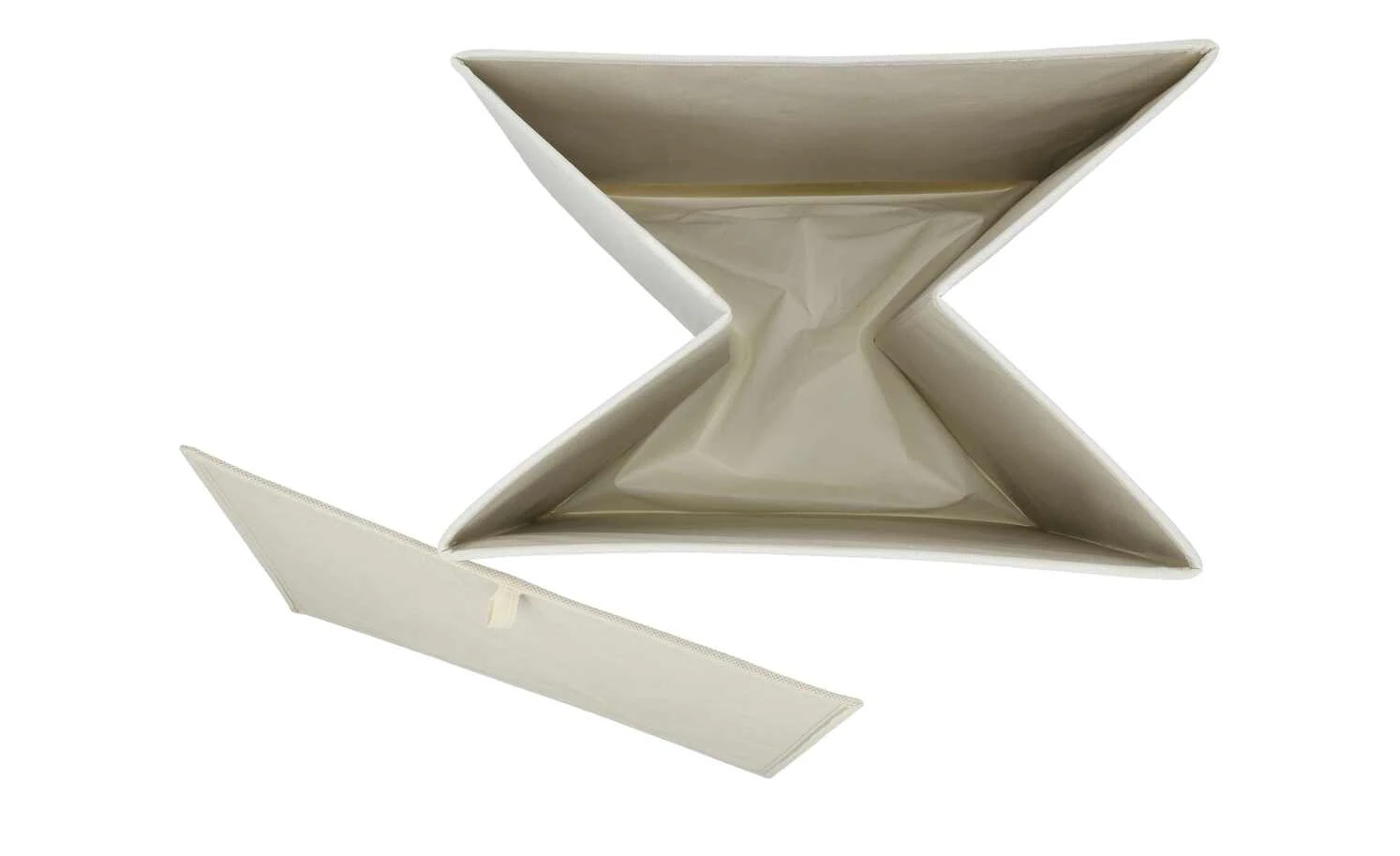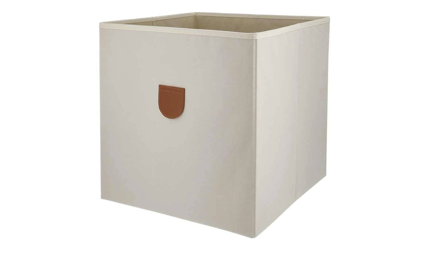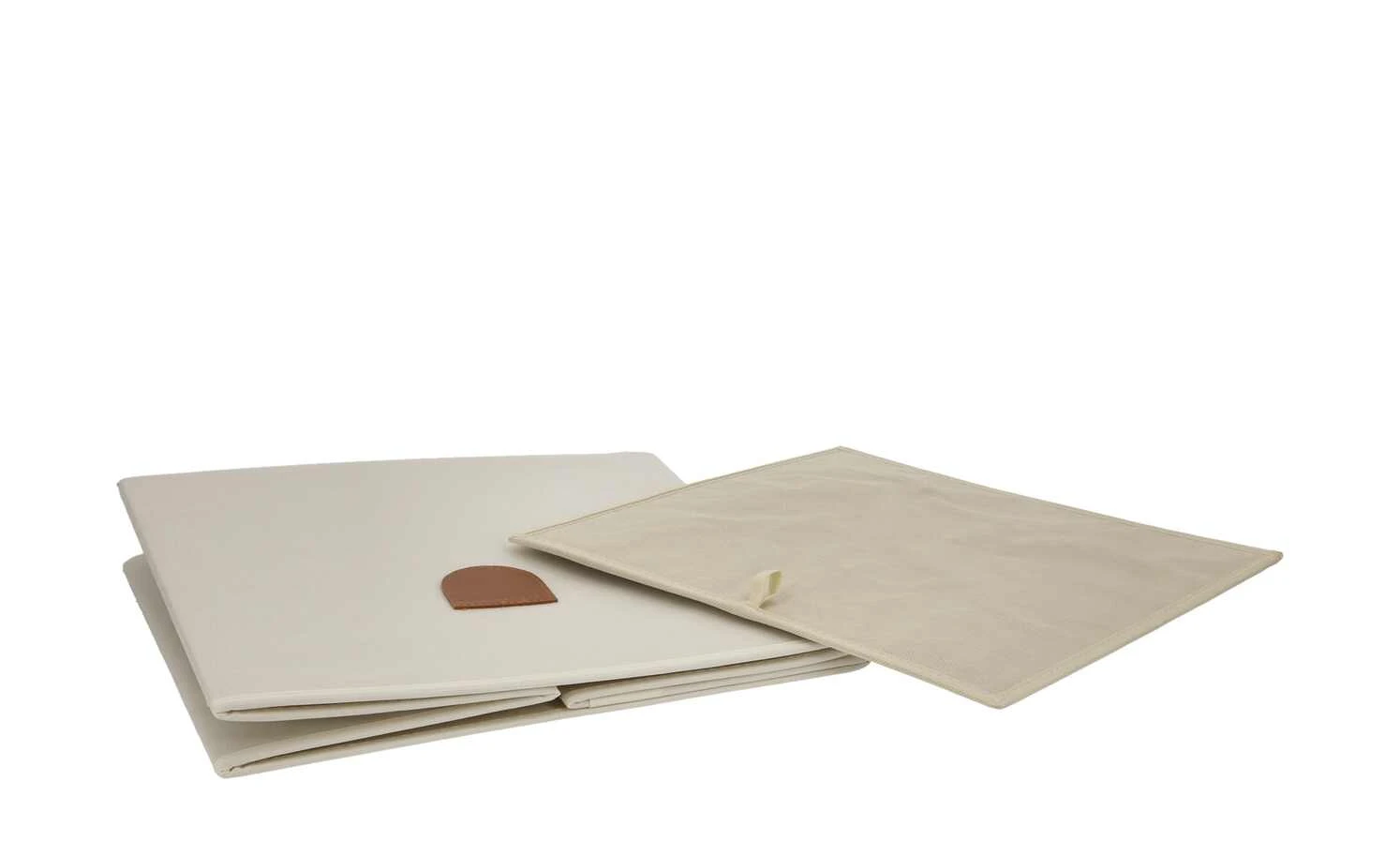 - Materialzusammensetzung: Kunstlederlasche aus PVC (Polyvinylchlorid), Stoffbox aus 40% Baumwollgewebe und 60% Vliesstoff