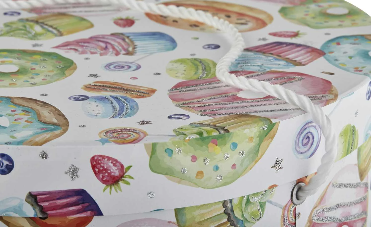 - Farbe / Dekor: Weiß / mehrfarbig / Glitter