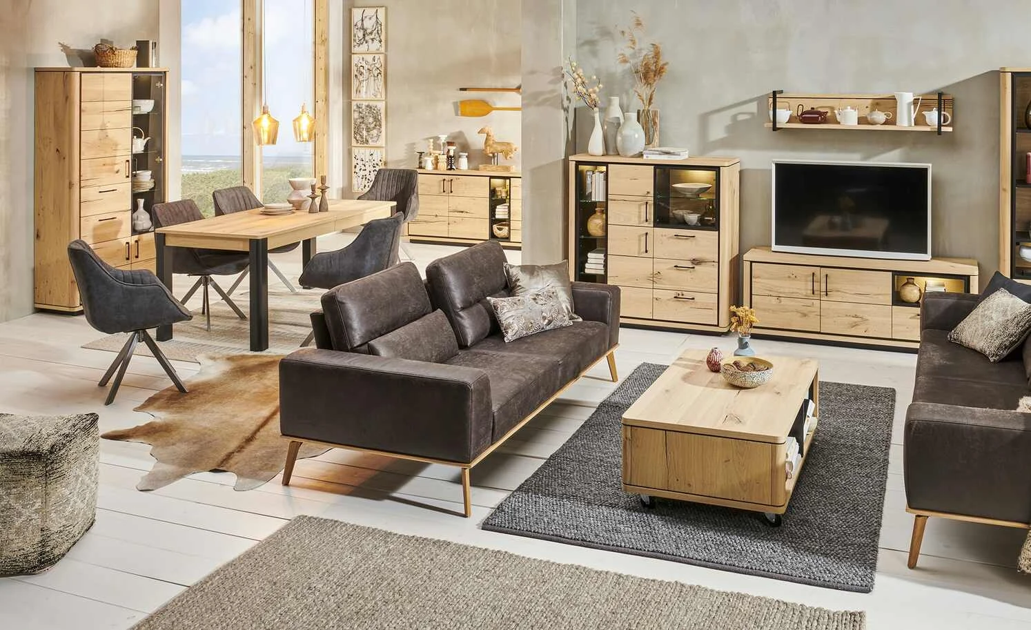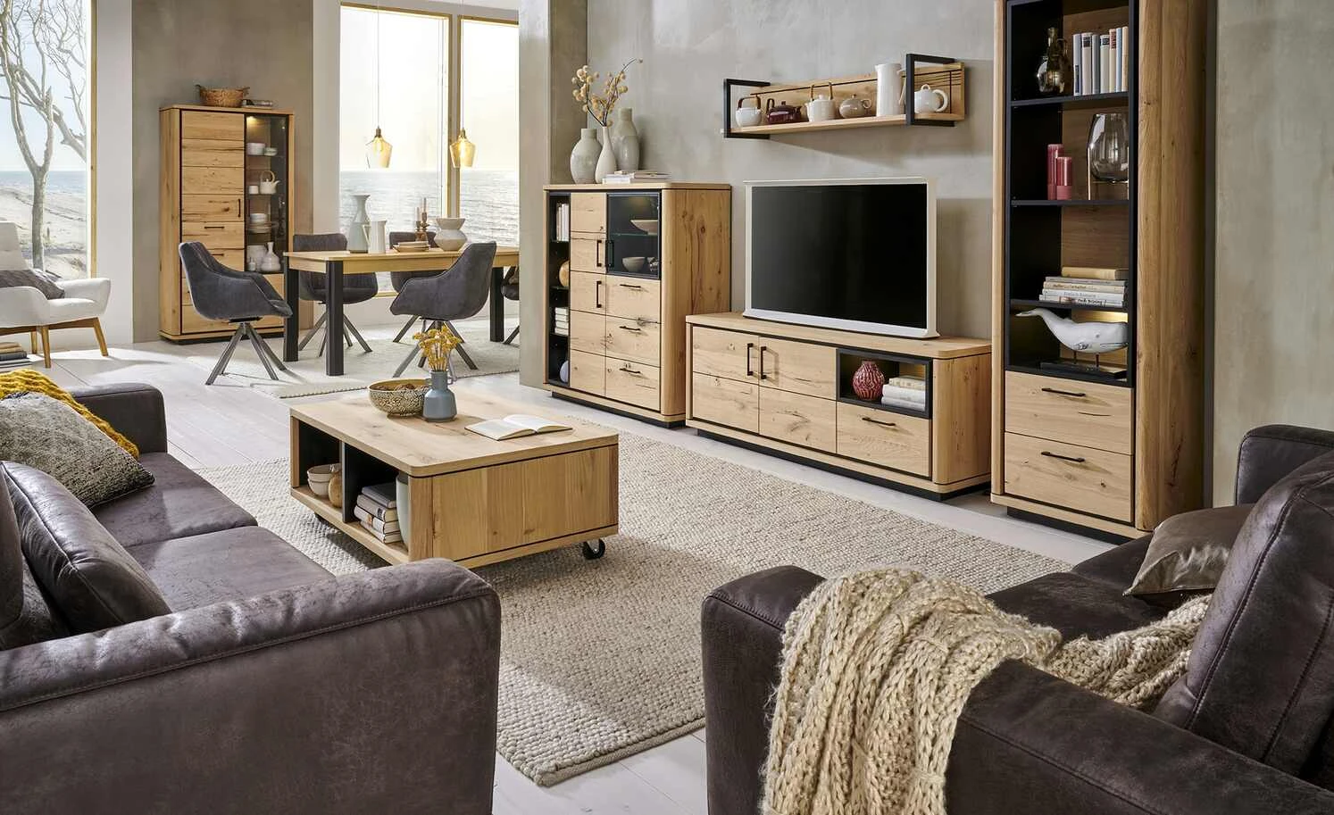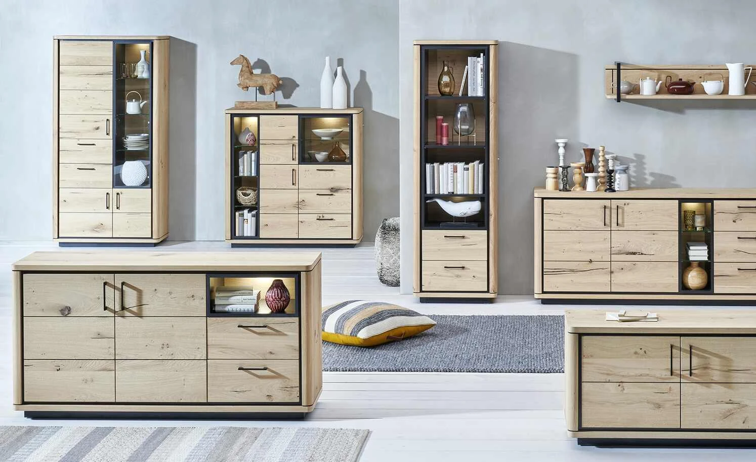 - Mehr zum Material: Absetzungen Schwarz lackiert, Board und Paneel: Wildeiche natur furniert mit Wachseffektlack