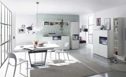 Das Hängeregal Salerno ist flexibel platzierbar. Hängen Sie es waagerecht oder senkrecht an die Wand – so wie Sie mögen. Salerno verfügt über fünf Regalfächer, die Sie für Bücher, Fotos oder andere Dinge nutzen können. Das Regal ist in einem matten Weiß designt. Alle Rückwände der Regalfächer setzen sich in Wildeiche (Nachbildung) ab.