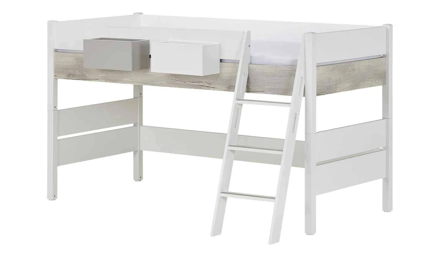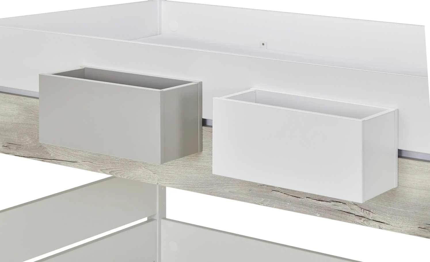 Diese Regalbox von PAIDI ist eine praktische Ergänzung für das Spielbett Kira. Sie wird einfach zwischen Bettgestell und Absturzsicherung platziert. Die Box kann mit der Öffnung nach vorne oder nach oben moniert werden – so wie es besser passt. Alle Oberflächen sind mit Melamin beschichtet und deshalb unempfindlich für Kratzer. Der kieselgraue Farbton harmoniert auch optisch mit dem Bett.