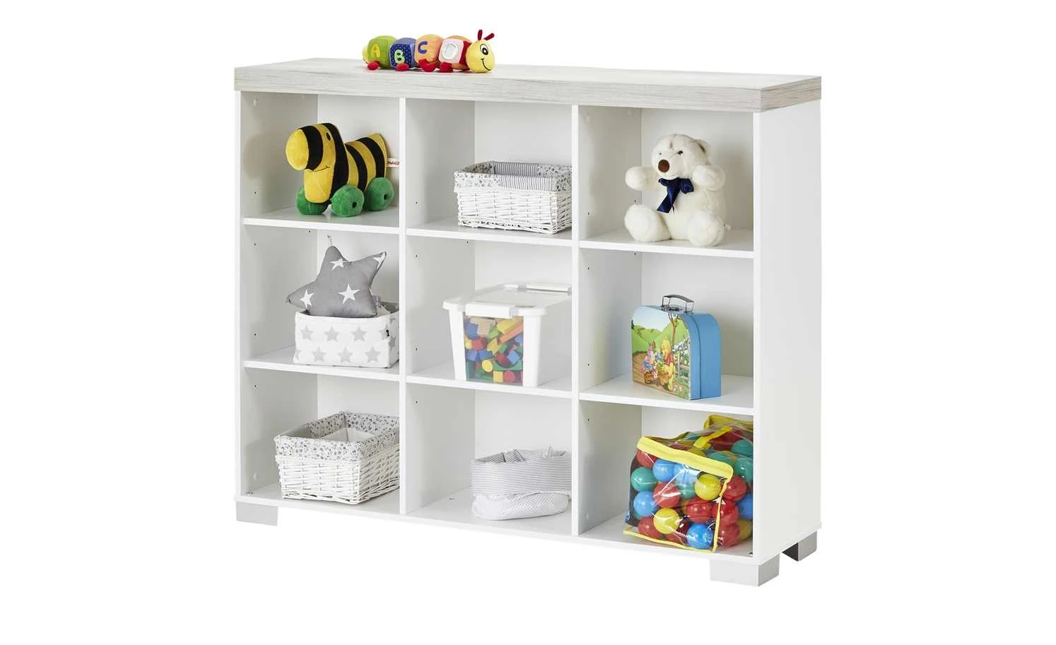 - Neun große Fächer für Spielzeug