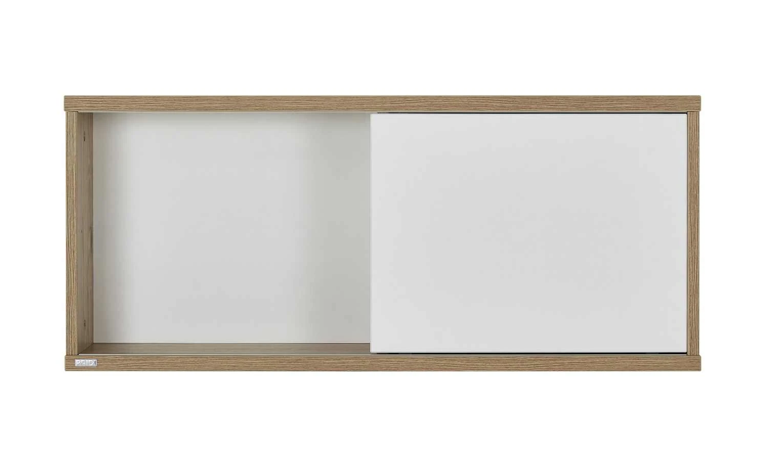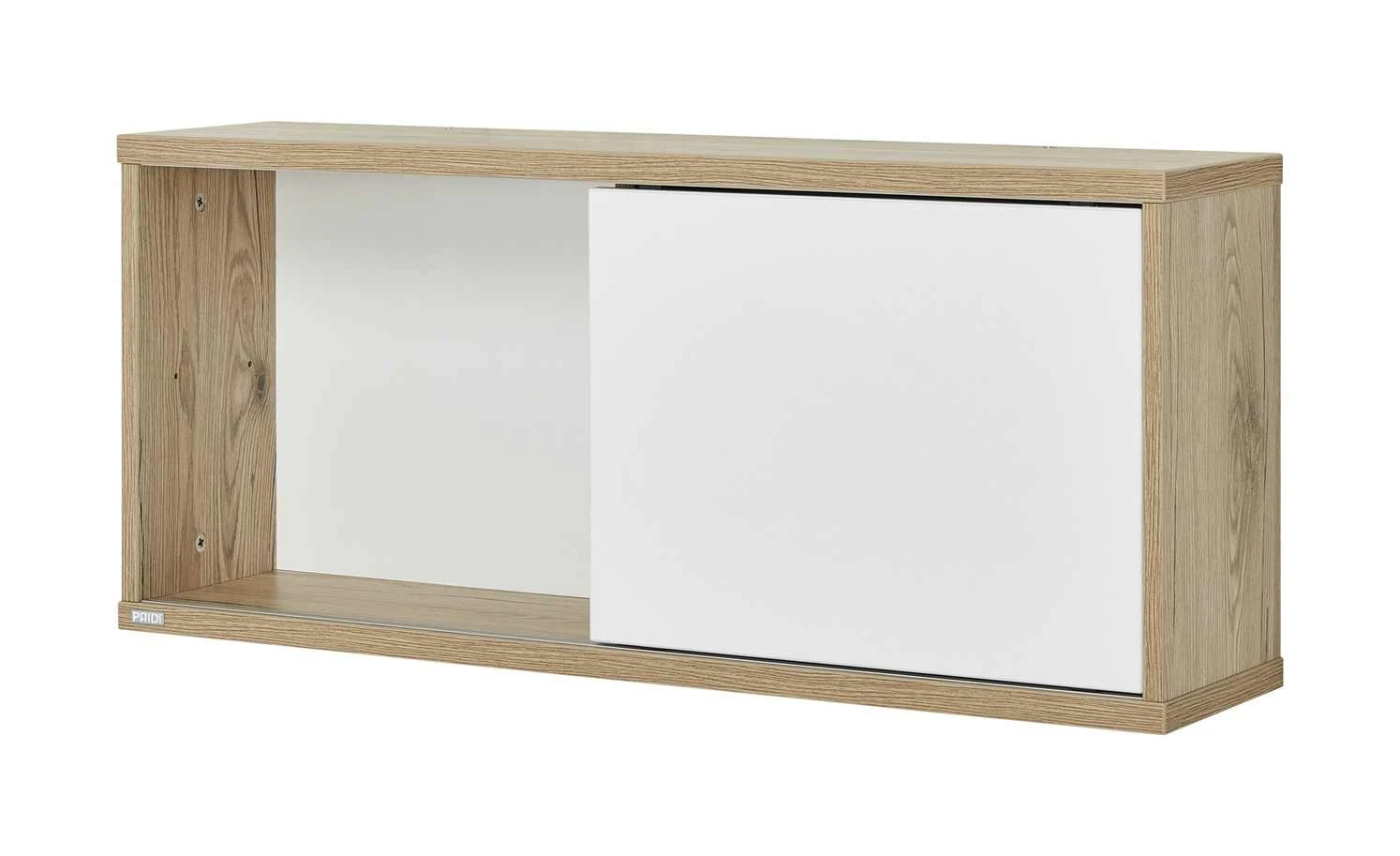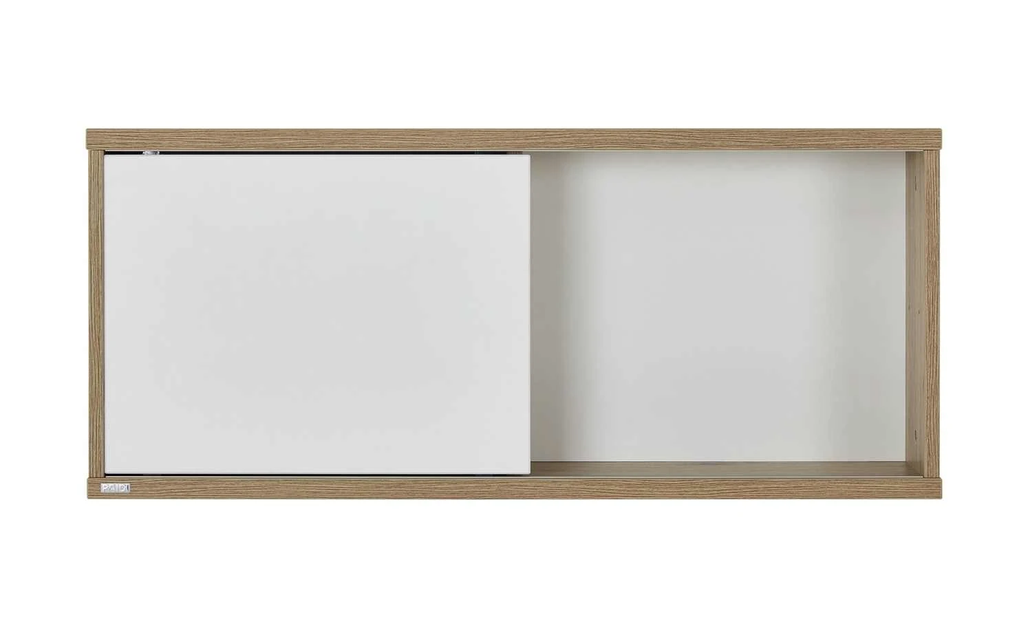 Stauraum an der Wand – den schafft das Wandregal Fionn von PAIDI. Es verfügt über zwei Fächer. Die Schiebetür kann nach Belieben links, rechts oder mittig platziert werden. Alle Oberflächen sind mit Melaminharz beschichtet, was sie kratzerunempfindlich macht.