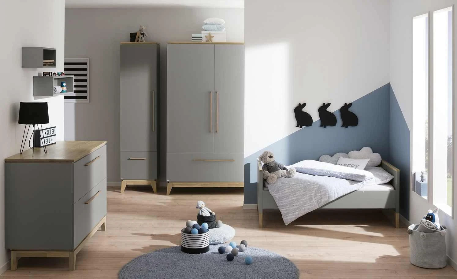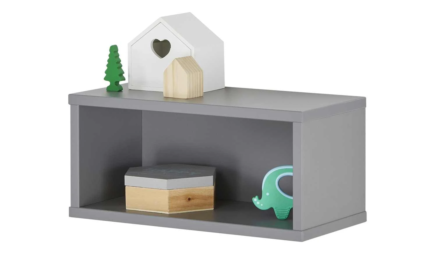 Nutzen Sie freie Wände für zusätzlichen Stauraum. Perfekt dafür: das Wandregal Sten von PAIDI. Es verfügt über ein großes, 40 Zentimeter breites Fach. Sie können aber auch die Abdeckplatte oben als praktische Stellfläche nutzen, so dass Ihnen insgesamt zwei Böden zur Verfügung stehen. Sten ist mit schiefergrauem Melamin beschichtet. Dadurch passt das Regal wunderbar zu den anderen Möbeln der Babyzimmerserie. Platzieren Sie es zum Beispiel oberhalb der Wickelkommode.