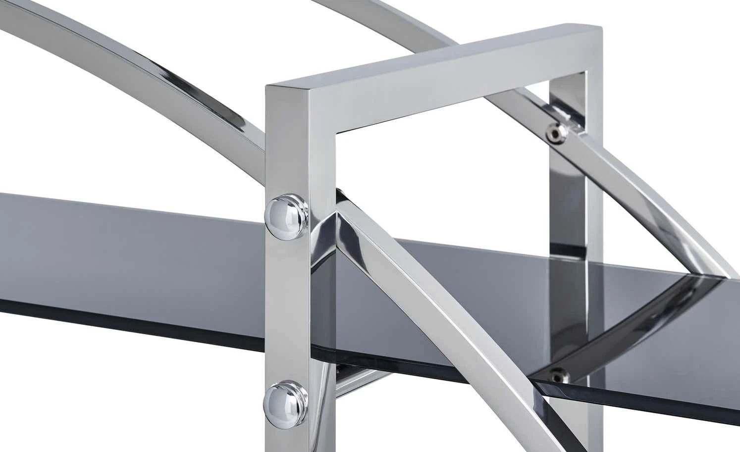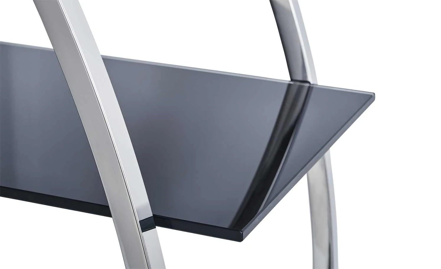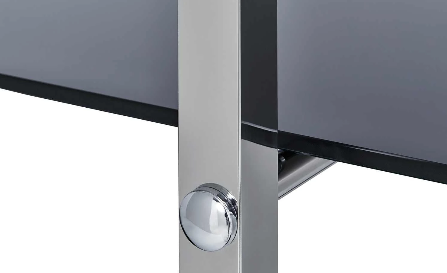 - Mehr zum Material: Oberfläche Korpus: verchromt, Hochglanz, 4 Regalböden aus schwarzem Glas
