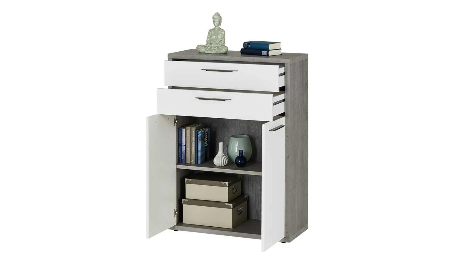 Drei große Fächer hat das Regal Donau. Damit ist es eine praktische Ergänzung für Ihr Büro oder das heimische Arbeitszimmer. Sie können das Regal für Ordner, Bücher und andere Büromaterialien nutzen. Wenn Sie es mit den separat erhältlichen Türen ergänzen, ist der Inhalt der Fächer vor neugierigen Blicken geschützt. Donau ist melaminbeschichtet und somit pflegeleicht und robust. Der lässige Beton-Look passt zum gradlinigen Design.