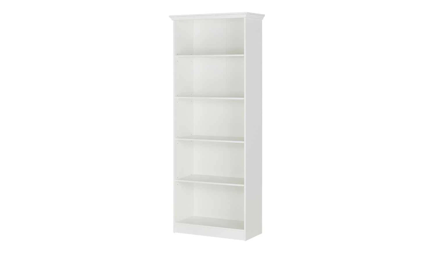 Mit seinen fünf großen Fächern bietet das Regal Laurito richtig viel Platz. Nutzen Sie ihn zum Beispiel für Bücher, Ordner oder ein paar hübsche dekorative Dinge. Die vier Einlegeböden können Sie in der Höhe verstellen – und so die Größe der Fächer individuell anpassen. Korpus und Böden sind mit Melamin beschichtet. Das sorgt für kratzerunempfindliche und pflegeleichte Oberflächen. Der Weißton harmoniert mit den Verzierungen, die an den Vintage- und Landhausstil erinnern.