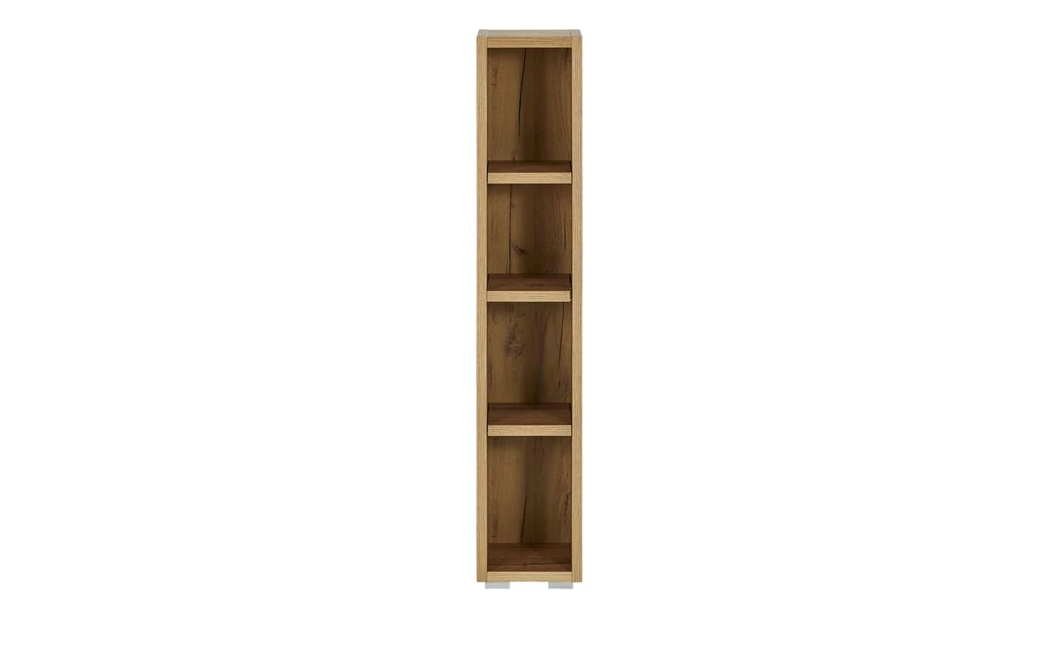 Nutzen Sie auch kleine Nischen praktisch. Zum Beispiel mit dem Regal Tarent. Es braucht nur wenig Platz, bietet gleichzeitig aber Stauraum in vier Fächern. Die drei Einlegeböden können Sie in der Höhe variieren. Tarent hat ein zeitloses Design in attraktiv gemaserter Honigeiche (Nachbildung).