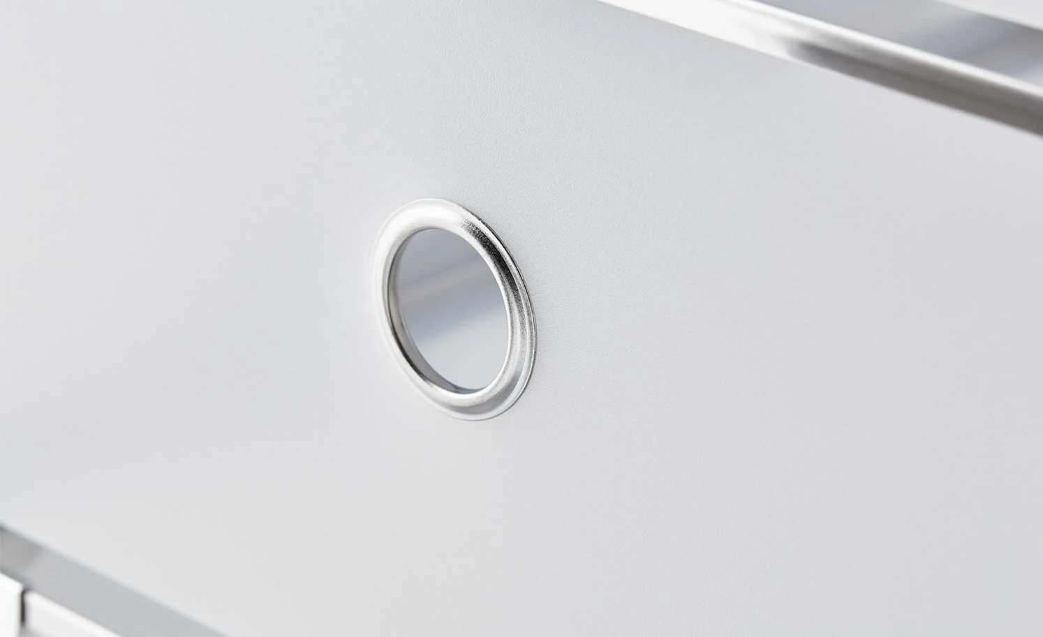 - Mehr zum Material: Oberflächenfinish Korpus: verchromt, Hochglanz, Material Abdeckplatte: Holzwerkstoff foliert, Material Schubkasten: Kunststoff, Farbe Deckel: Hochglanz Weiß