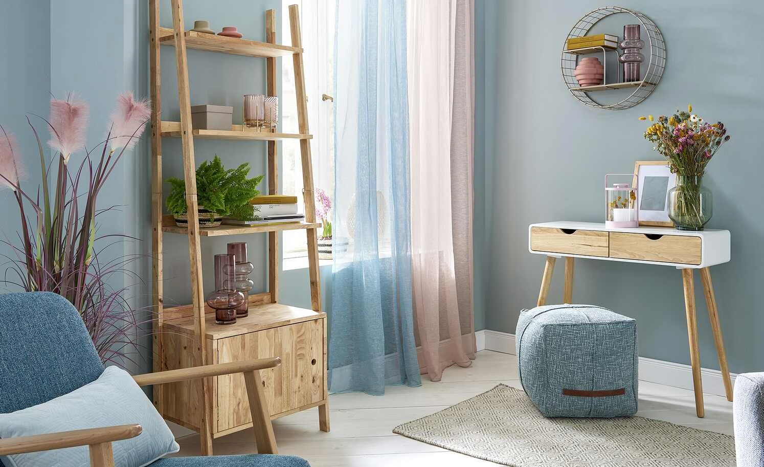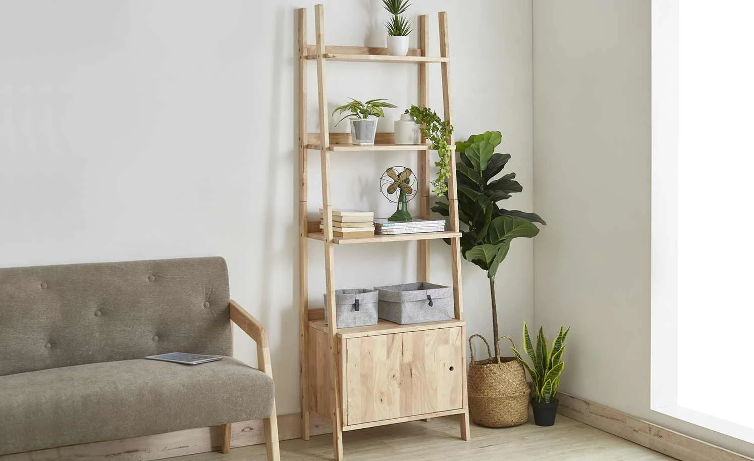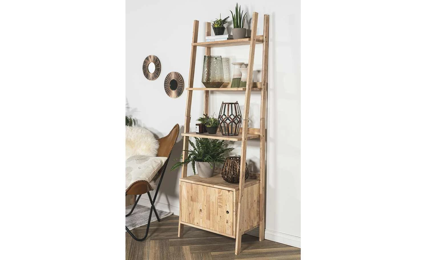 Das Standregal Nate überzeugt mit seinem natürlichen, freundlichen Design. Das 180 Zentimeter hohe Regal besteht komplett aus unbehandeltem, schön gemasertem Gummibaumholz. Auf vier Etagen steht Ihnen Stauraum für Dekoration, Bücher und vieles mehr zur Verfügung. Im unteren Bereich finden Sie zwei weitere Fächer, die durch eine blickdichte Holztür verborgen sind. Das Standregal Nate ist ein wahrer Wandlungskünstler: Mit nur wenigen Handgriffen lässt sich der obere Bereich vom Hauptregal trennen. Das obere Stück mit den zwei offenen Regalen eignet sich dann perfekt als Pflanzentreppe und Blumenbank.