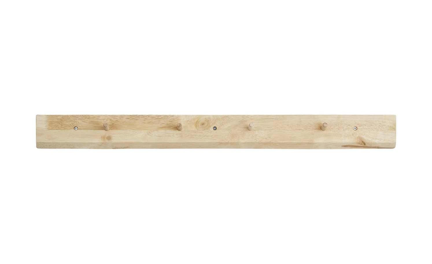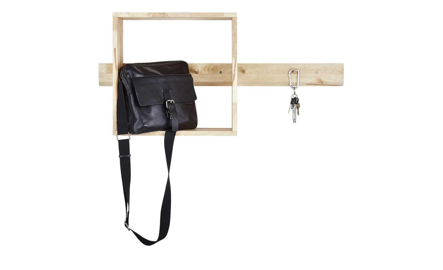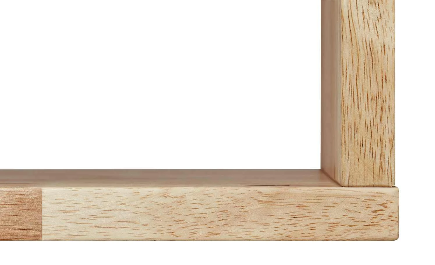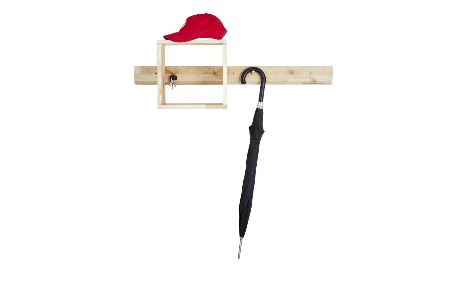 Nate bietet Ihnen stylischen Stauraum für die Wand. Zu dem Regal-Set gehören fünf Teile, die Sie ganz nach Bedarf kombinieren können. Im Lieferumfang enthalten sind zwei große Führungsleisten, acht Haken und drei quadratische Boxen. Diese können Sie nach Wunsch an die Leisten klemmen. Auch die Haken können einzeln oder in Kombination mit Boxen an der Leiste befestigt werden. Nate ist aus massivem Gummibaum. Für einen natürlichen Look wurde das Holz unbehandelt belassen.