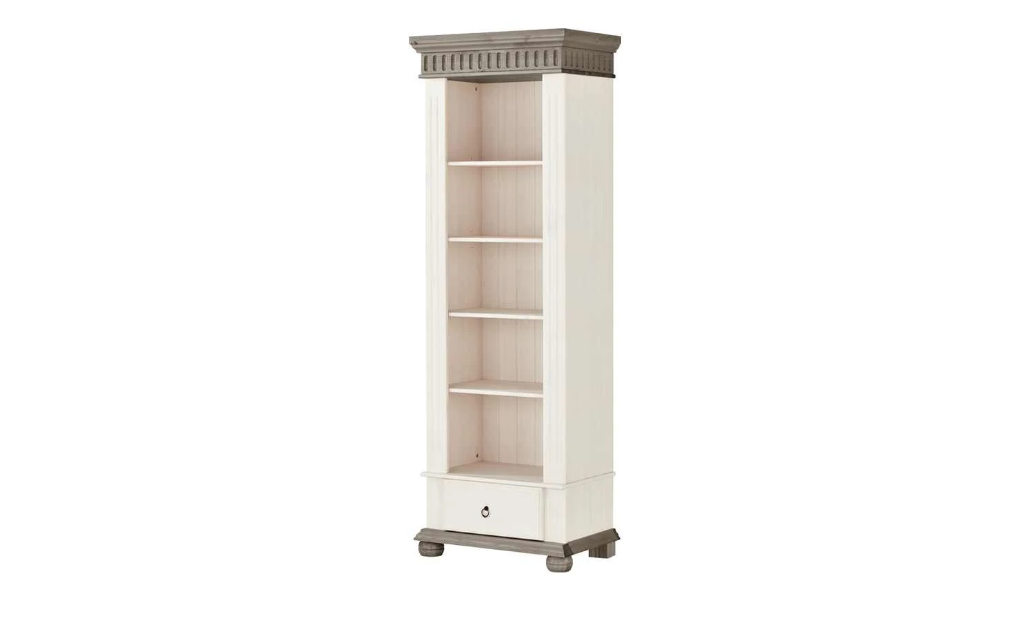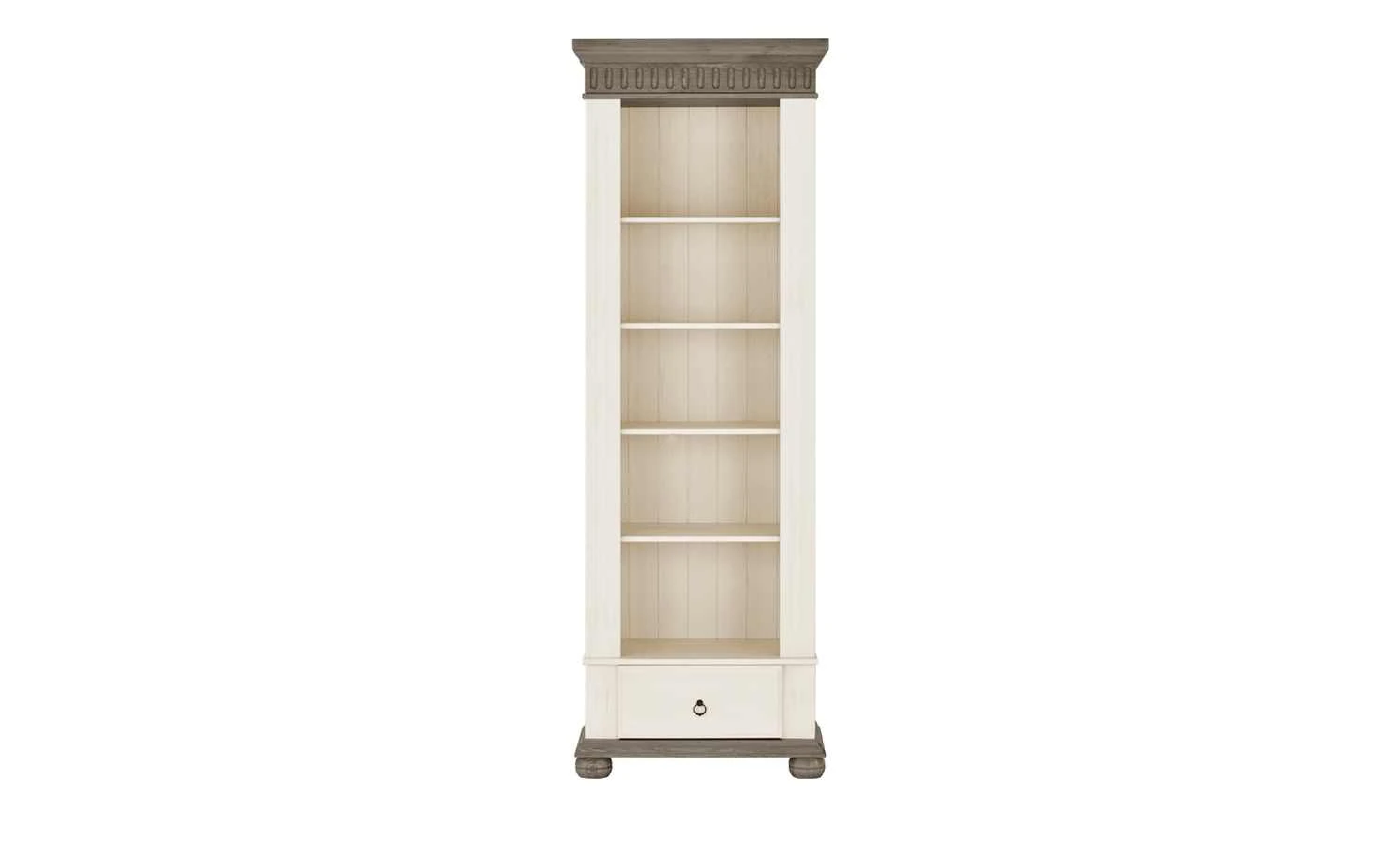 Das Standregal Bornholm hilft dabei, Ordnung im Kinderzimmer zu schaffen. Es verfügt über fünf geräumige Fächer. Sie eignen sich für Spielsachen und Kinderbücher. Zusätzlich gibt es eine Schublade unterhalb der offenen Fächer. Bornholm ist im Landhausstil designt – und passt somit perfekt zu den anderen Möbeln der Serie. Das Kiefernholz gibt dem Regal einen stabilen Stand. Es bezaubert mit seiner attraktiven Maserung. Die weißen Flächen werden in Kiefer lavafarben abgesetzt.