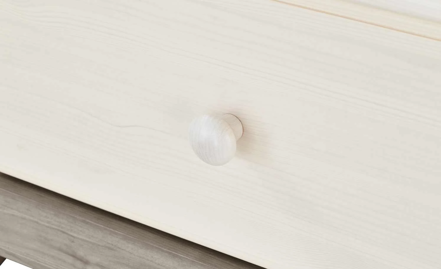 - Lieferumfang / mitgeliefertes Zubehör: je 1 Metall- und 1 Holz-Griff für die Schubkasten