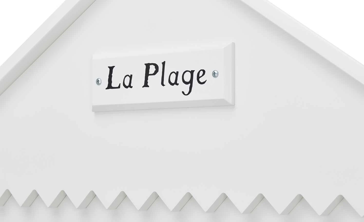- Mehr zu Ausstattung / Funktion: Dekoleiste mit der Aufschrift „La Plage“ (der Strand)