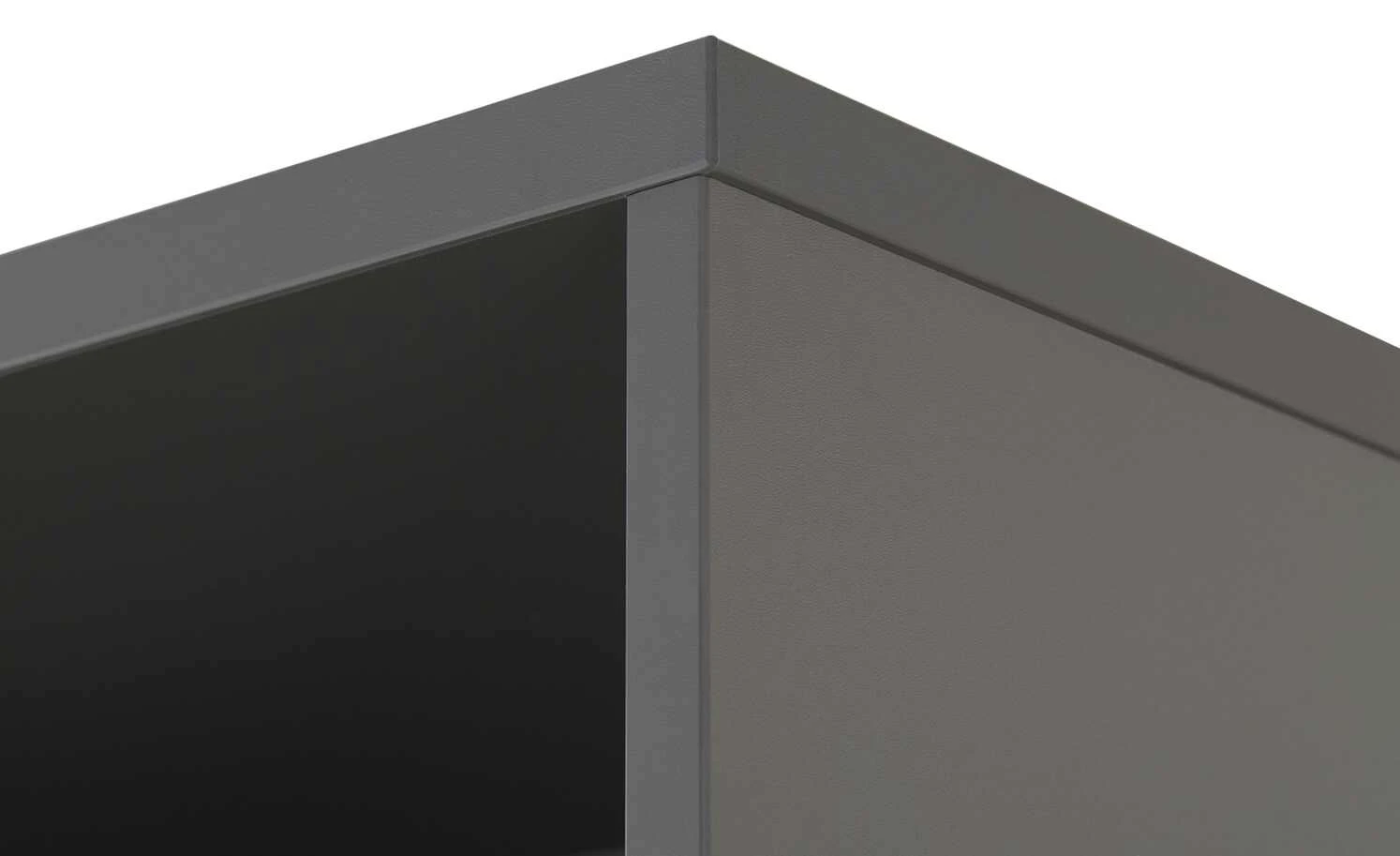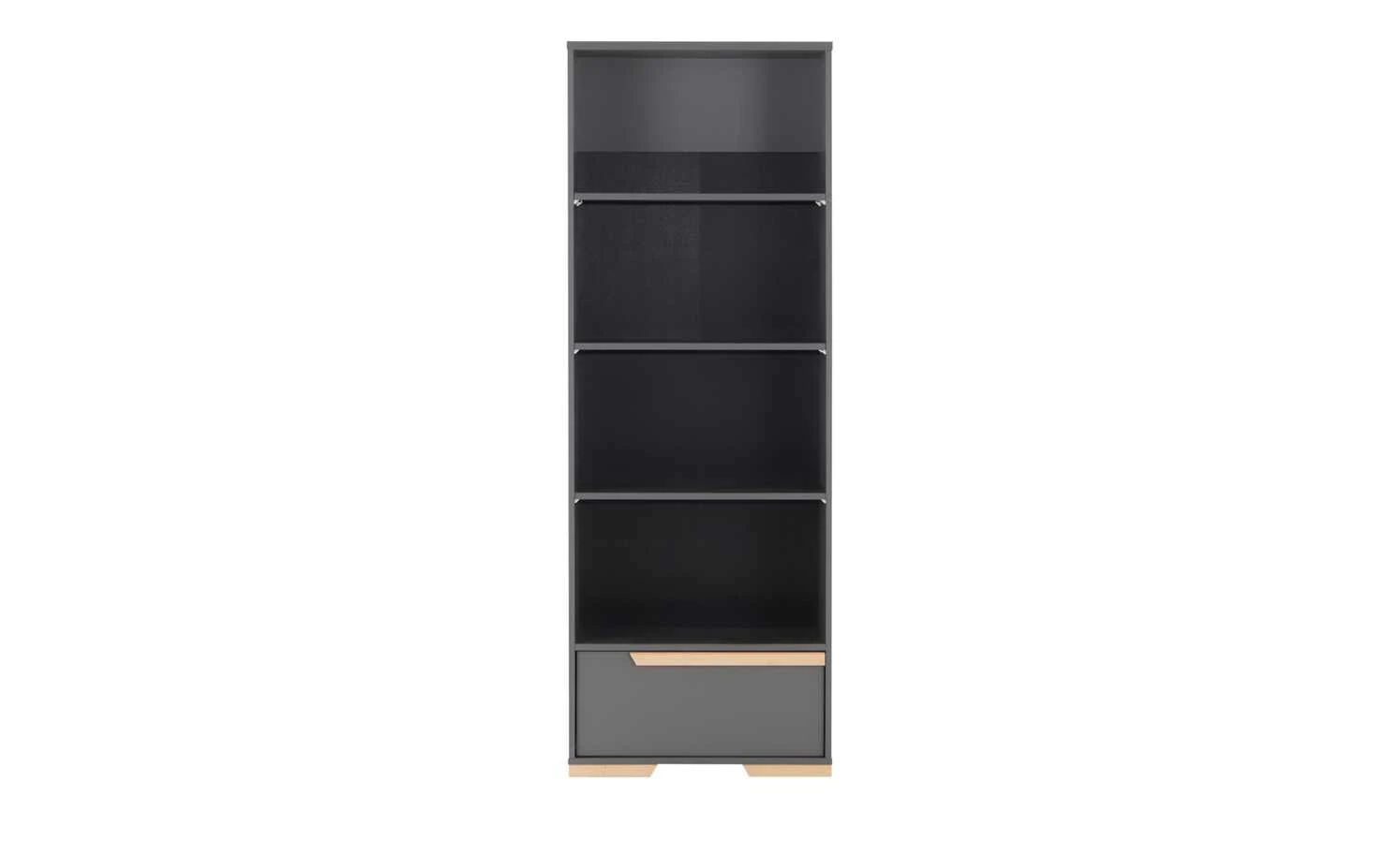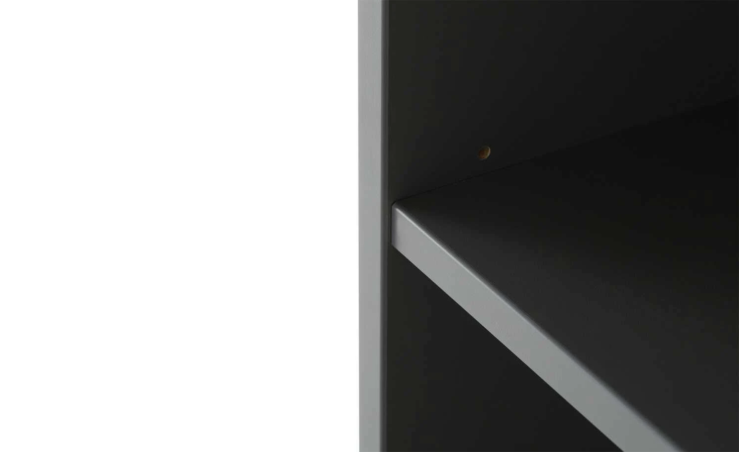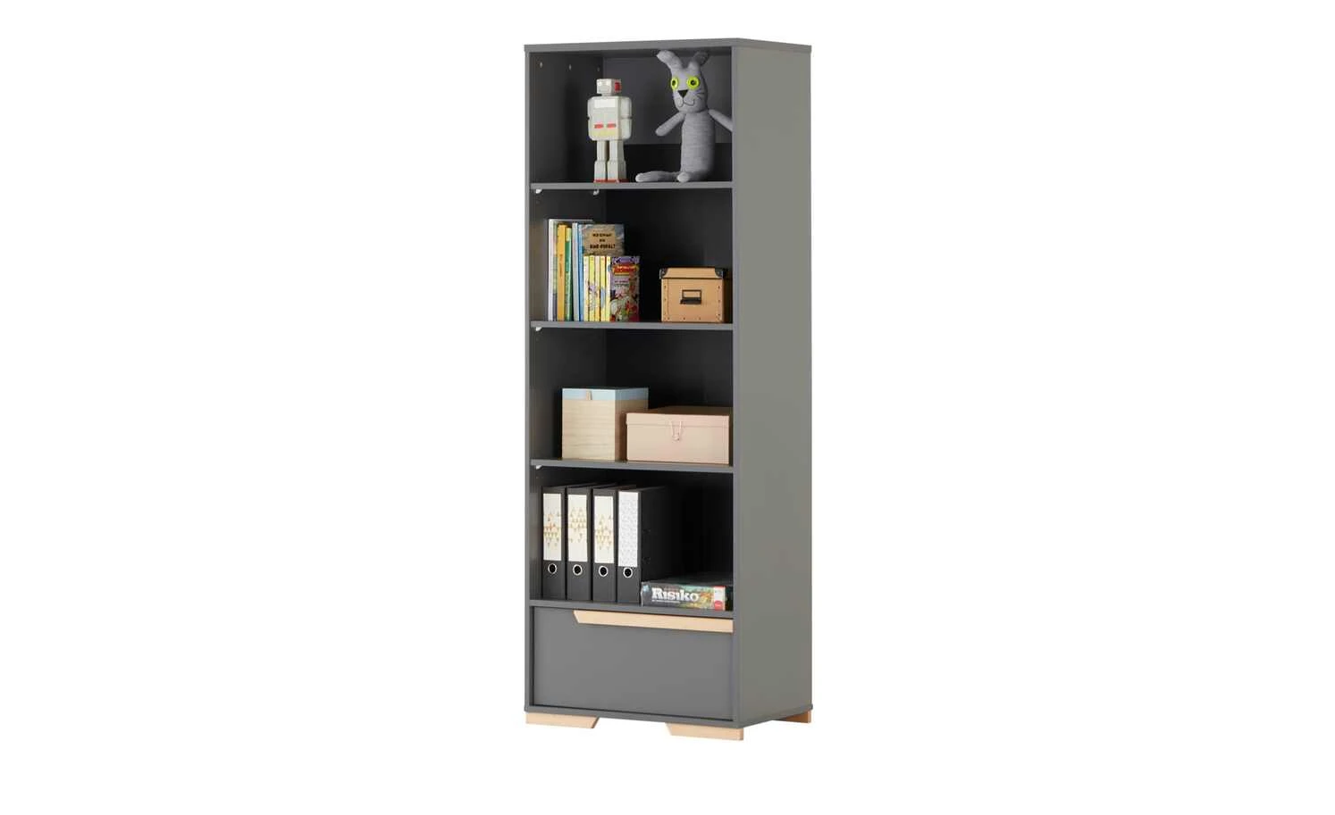 Regale im Kinderzimmer sind praktisch für Bücher oder Spielzeug. Passend zur Serie Soe ist dieses gleichnamige Standregal. Es verfügt über vier offene Fächer, deren Einlegeböden in der Höhe verstellt werden können. Zudem steht Ihnen eine Schublade zur Verfügung, die mit einer Soft-Close-Funktion ausgestattet ist. Während die Front lackiert worden ist, hat der Korpus eine laminierte Oberfläche. Die Ränder sind durch den Laserschnitt des Laminats besonders ebenmäßig.