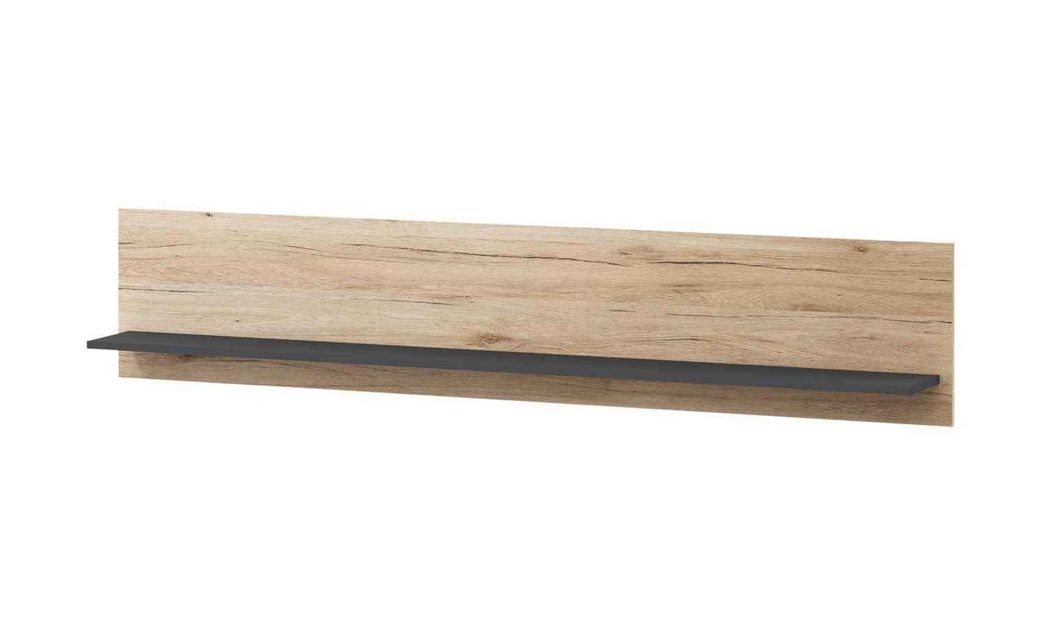 Das Wandboard Katt von uno ist eine gute Ergänzung zum Side- oder Lowboard der Serie. Sie können es wunderbar oberhalb der beiden an die Wand hängen. Das Board ist ganze 180 Zentimeter lang. Viel Platz also für gerahmte Fotos, ein paar Bücher oder hübsche Dekoobjekte. Katt ist aber auch selbst dekorativ. Das Paneel in auffällig gemaserter Eiche San Remo (Nachbildung) wird durch den graphitgrauen Boden abgesetzt.