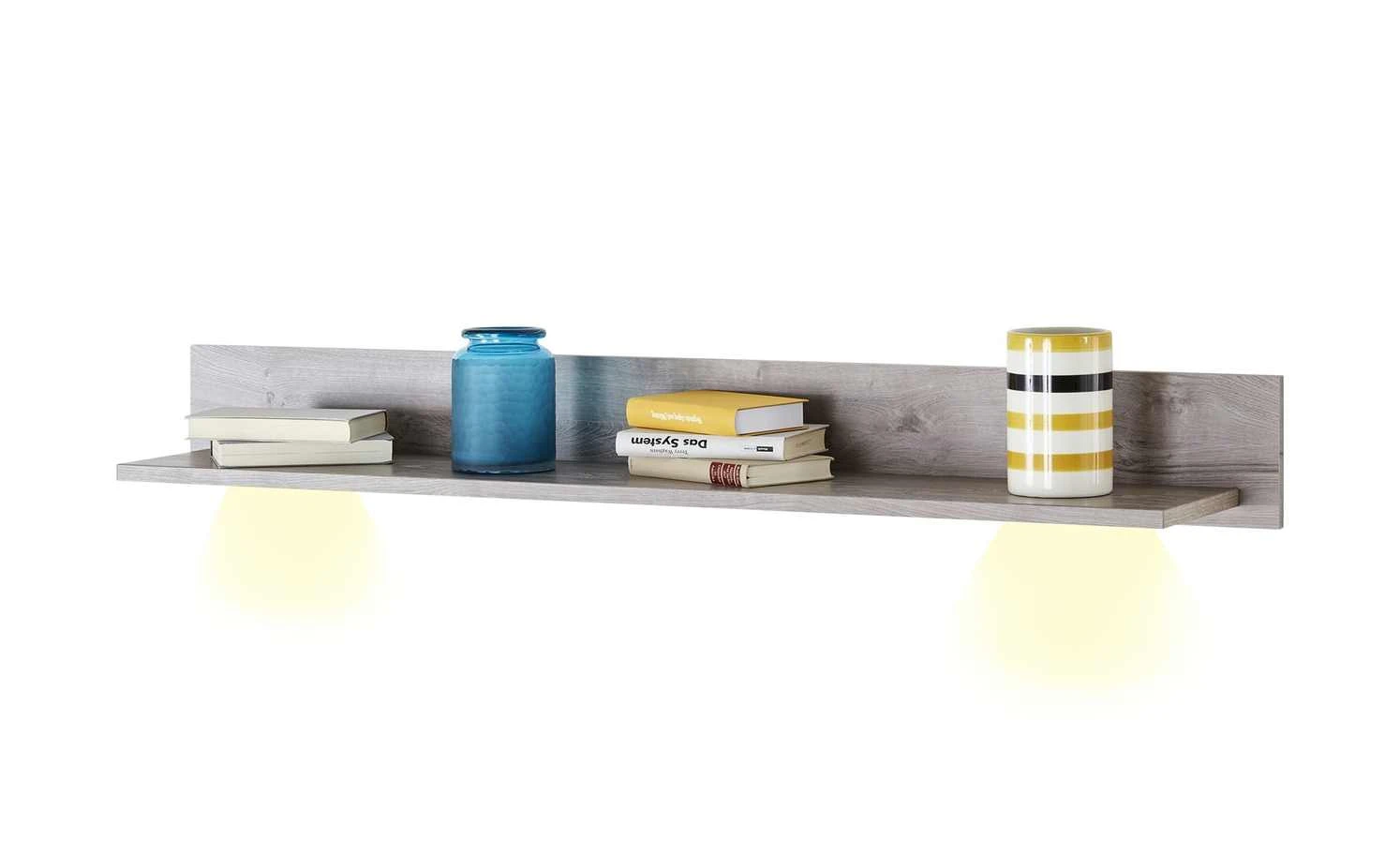 Mit einer Breite von 150 Zentimetern bietet das Wandpaneel Porto von uno viel Stellfläche. Sie können darauf Bücher, Fotos oder Deko abstellen. Board und Paneel haben ein Dekor in Haveleiche (Nachbildung). Porto wird mit einer LED-Beleuchtung geliefert.