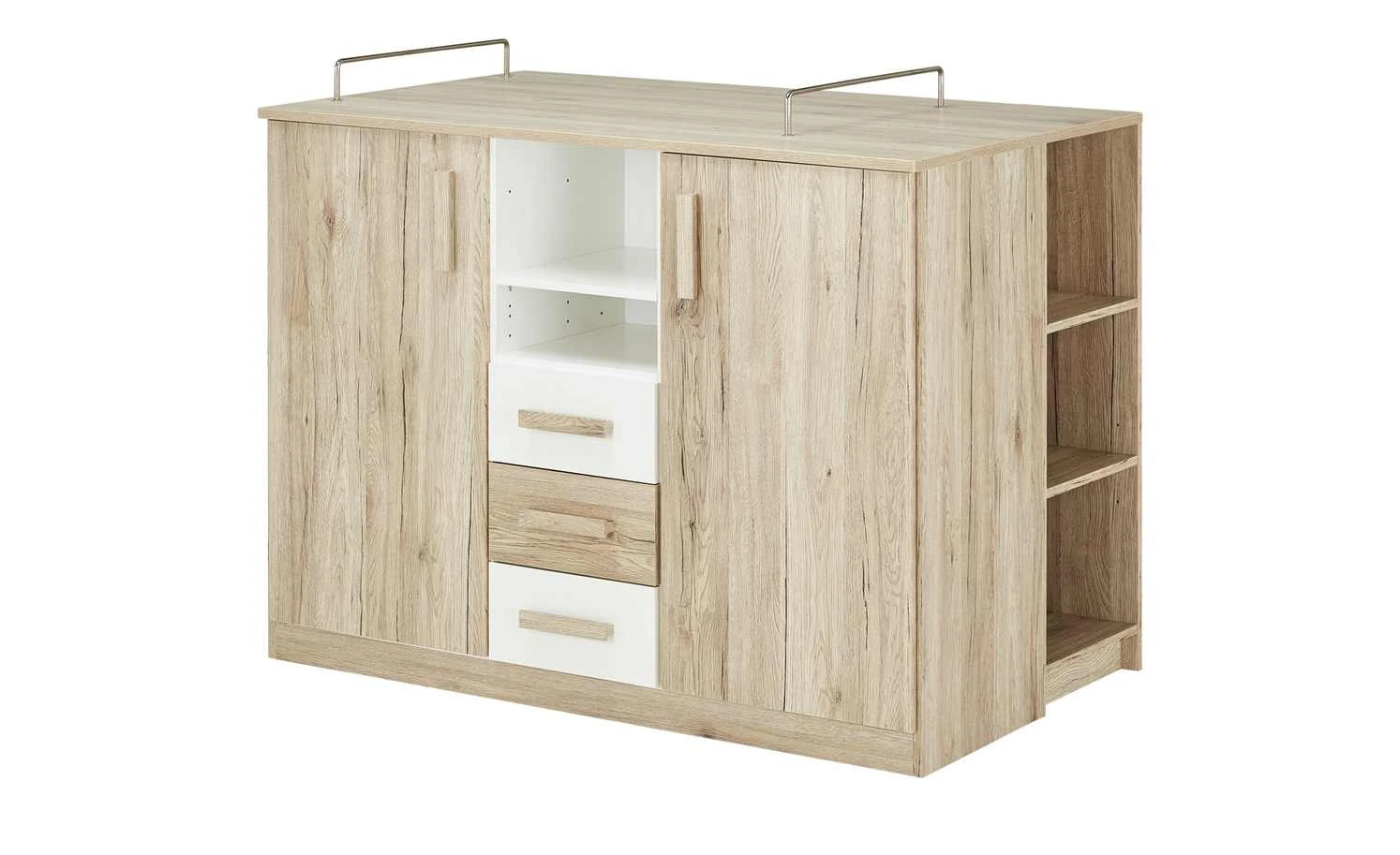 Ergänzen Sie die Wickelkommode Caja mit diesem gleichnamigen Unterstellregal. Das Regal hat drei Fächer. In ihnen können Sie Pflegeprodukte oder Windeln platzieren. Durch die offene Gestaltung haben Sie alles schnell bei der Hand, wenn Sie Ihr Baby wickeln. Caja greift die Holzoptik der Wickelkommode auf – und passt so auch optisch.