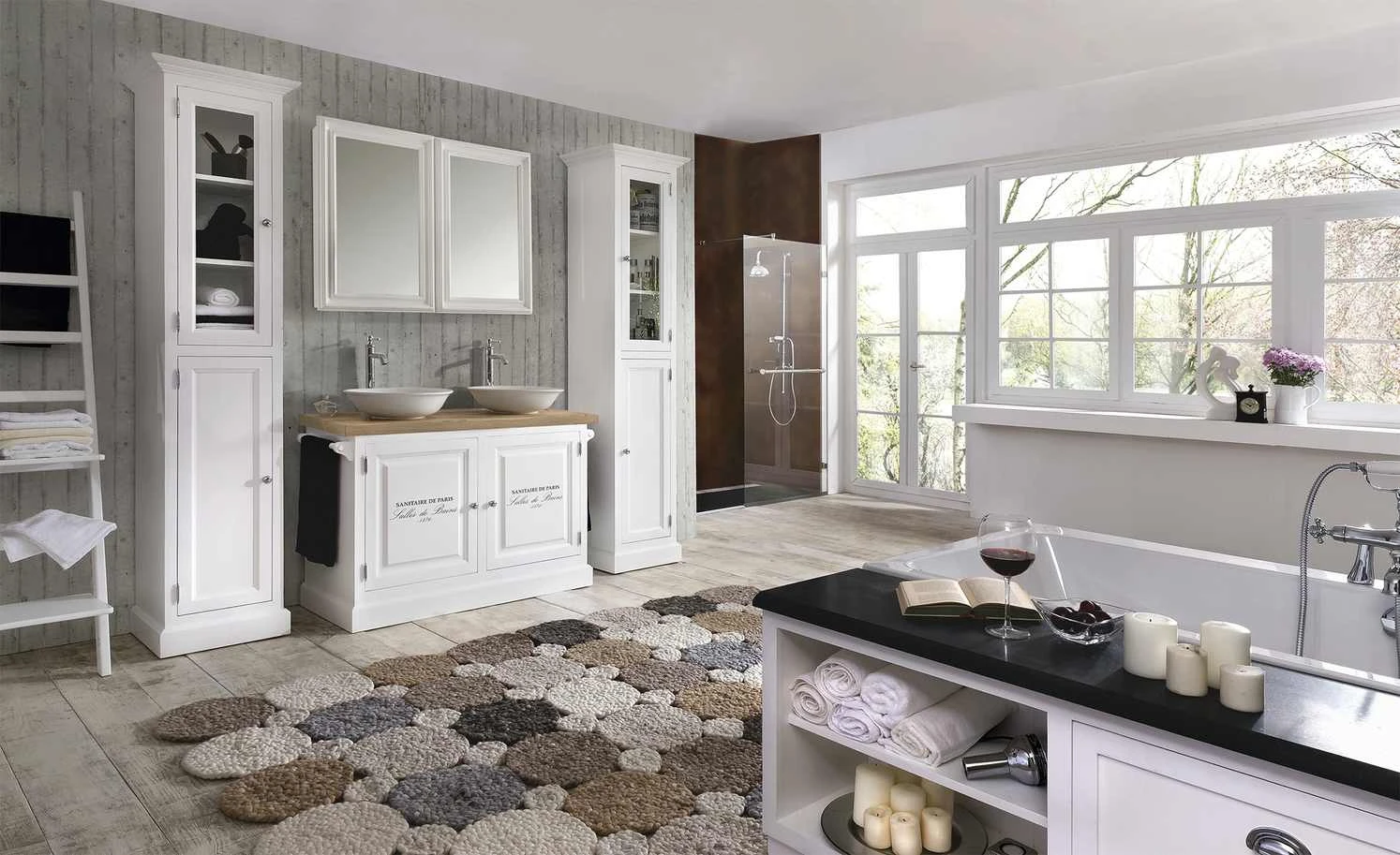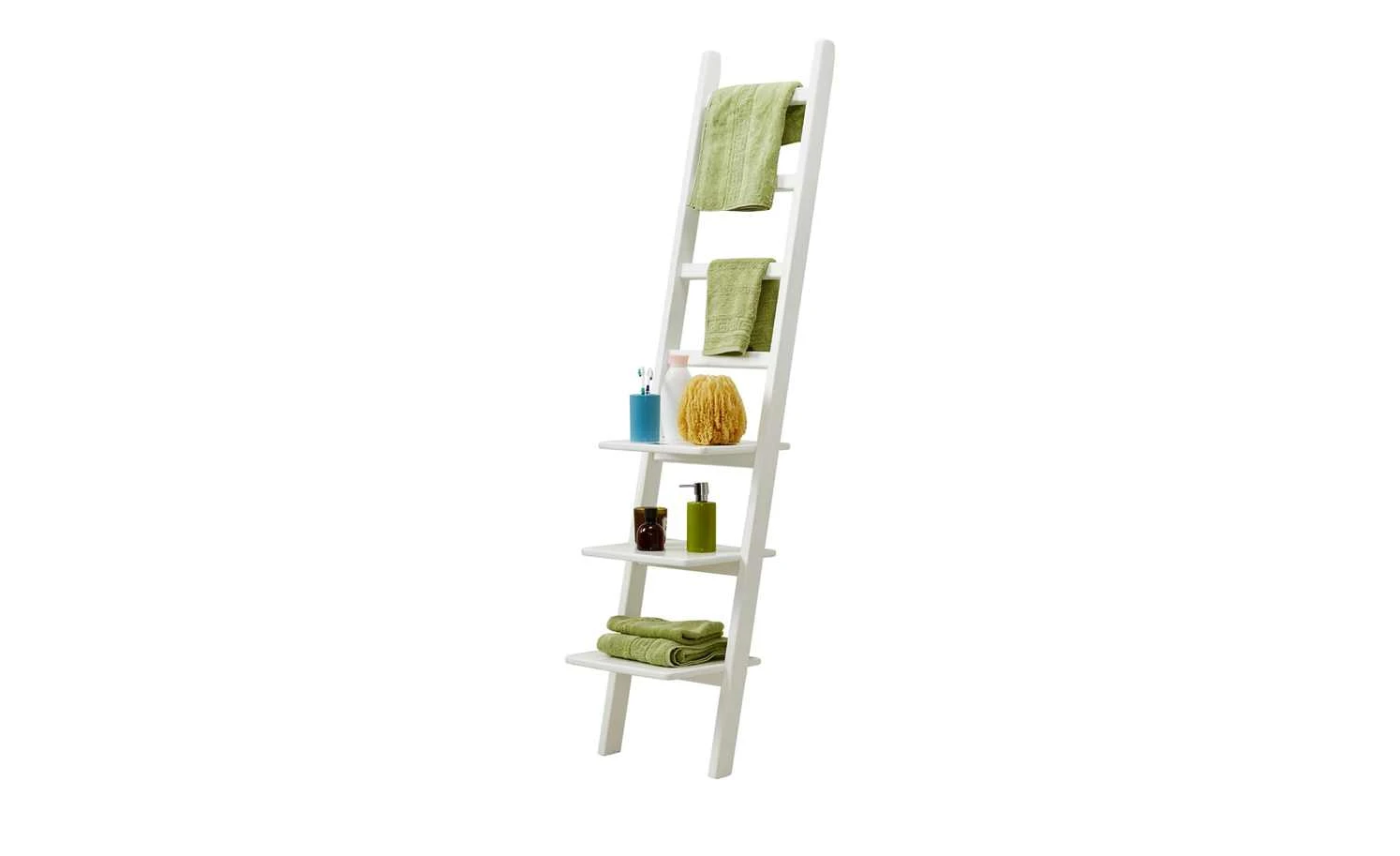 Wie der Name verrät, ist die Handtuchleiter Heckfelder See von Van Heck für Handtücher gedacht. Die Leiter ist mit vier Sprossen ausgestattet, über die die Handtücher gelegt werden. Zusätzlich verfügt die Leiter über drei Böden für Kosmetika und Co. Heckfelder See besteht aus massiver, weiß lackierter Fichte.