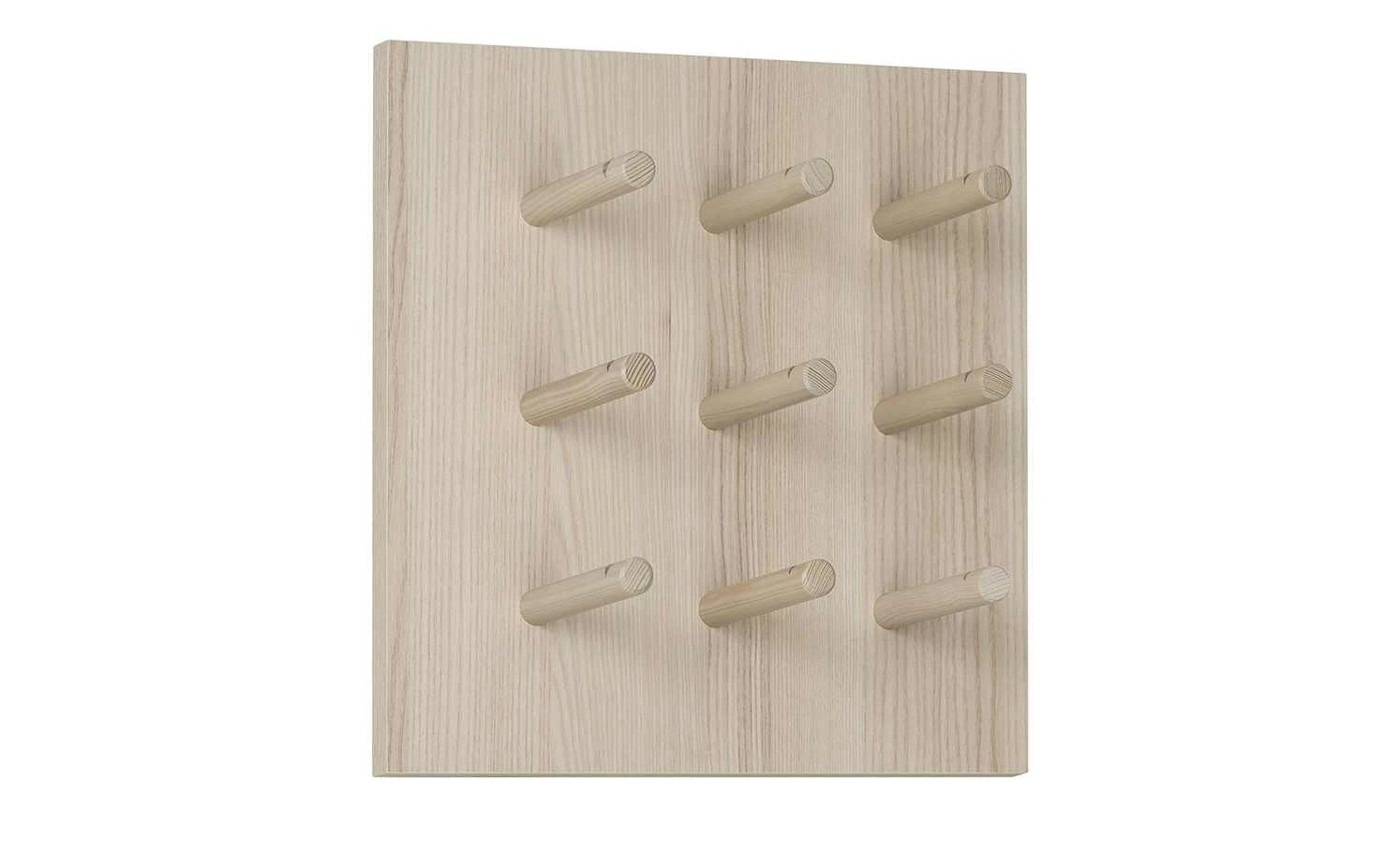 Das Paneel Spot wird einfach an die Wand angebracht. Es verfügt über neun Haken. Sie könne sie für Kleidung, Kopfhörer, Springseil oder den Turnbeutel nutzen. Das gesamte Paneel hat ein attraktives Dekor in Akazie (Nachbildung).