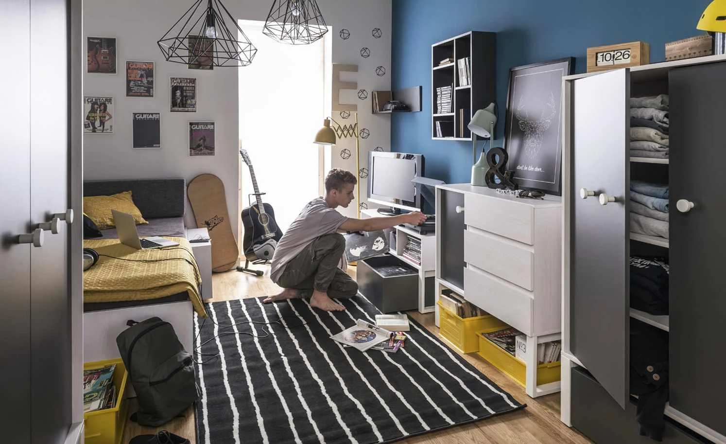 Mit dem Wandregal Nest von VOX lässt sich die Wand verschönern. Der dunkle graphitgraue Farbton macht sich an weißen, aber auch farbigen Wänden gut. Das Regal ist 70 Zentimeter breit und bietet eine Ablagefläche für Bücher, Spielzeug oder Sporttrophäen – sowie einen Knopf zum Aufhängen von Kopfhörern oder ähnlichem. Die passende Wandbefestigung ist im Lieferumfang enthalten.