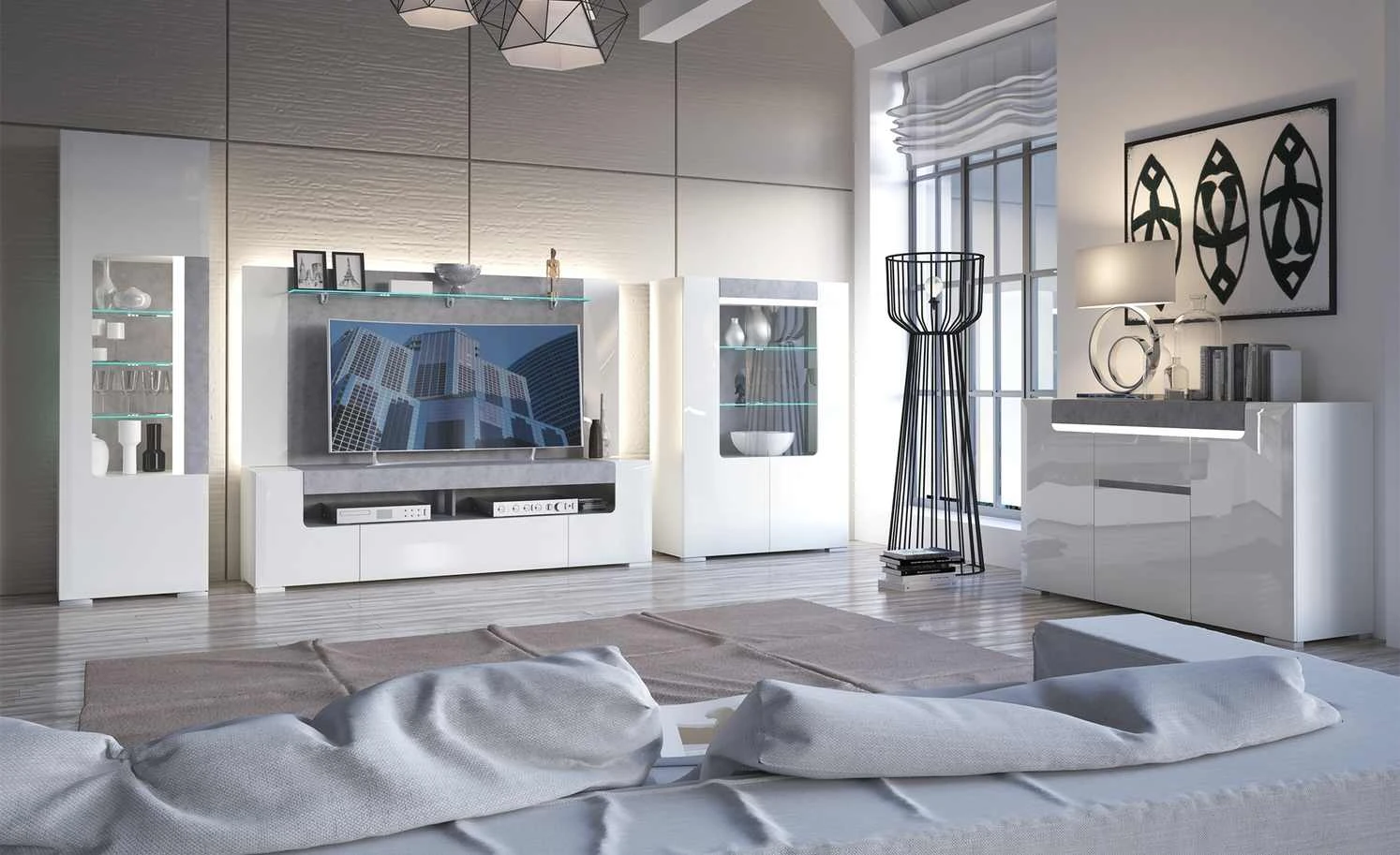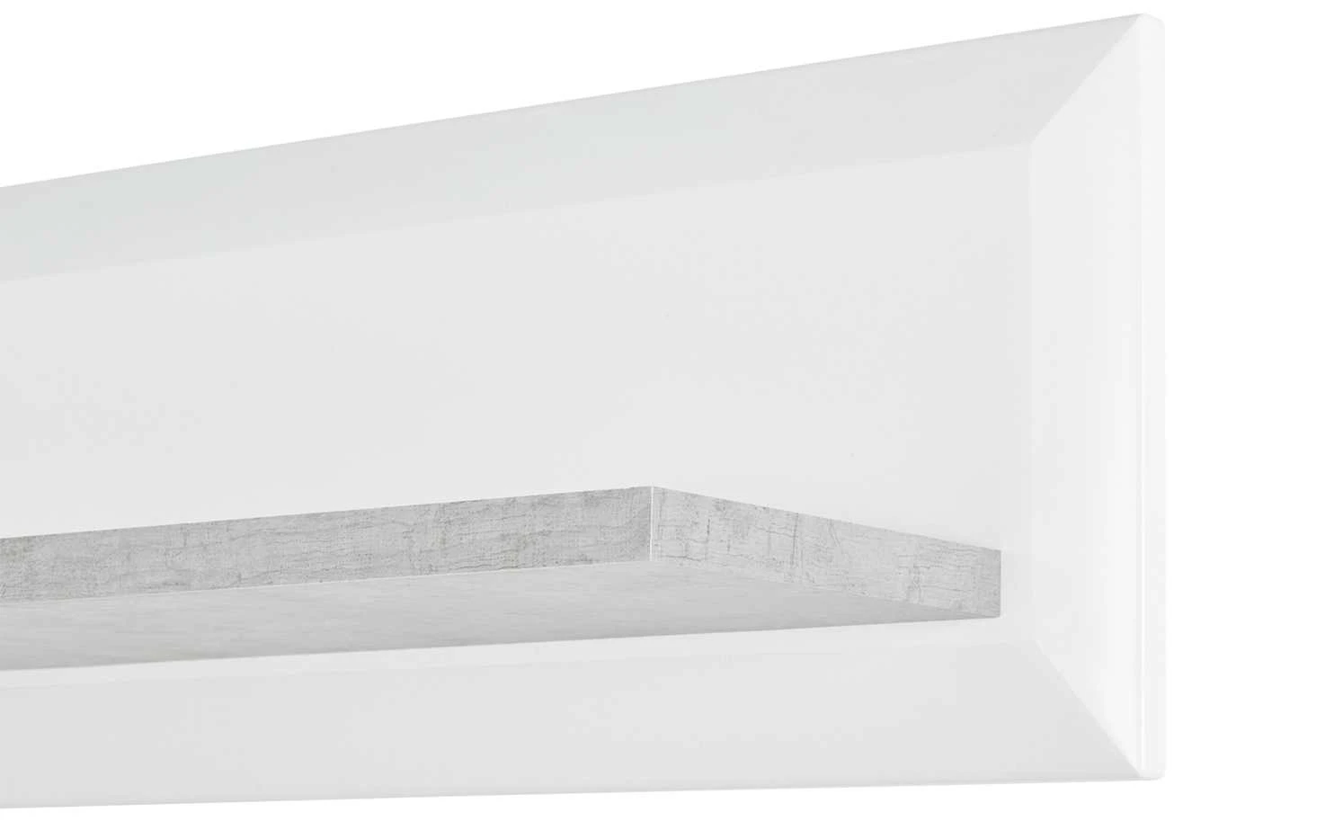 Das Wandboard Puro ist eine schöne Ergänzung zur gleichnamigen Serie. Das hochglänzende weiße Paneel wird vom Board abgesetzt. Es hat eine angesagte Beton-Optik. Puro bietet viel Platz für Deko, gerahmte Fotos oder ein paar Bücher.