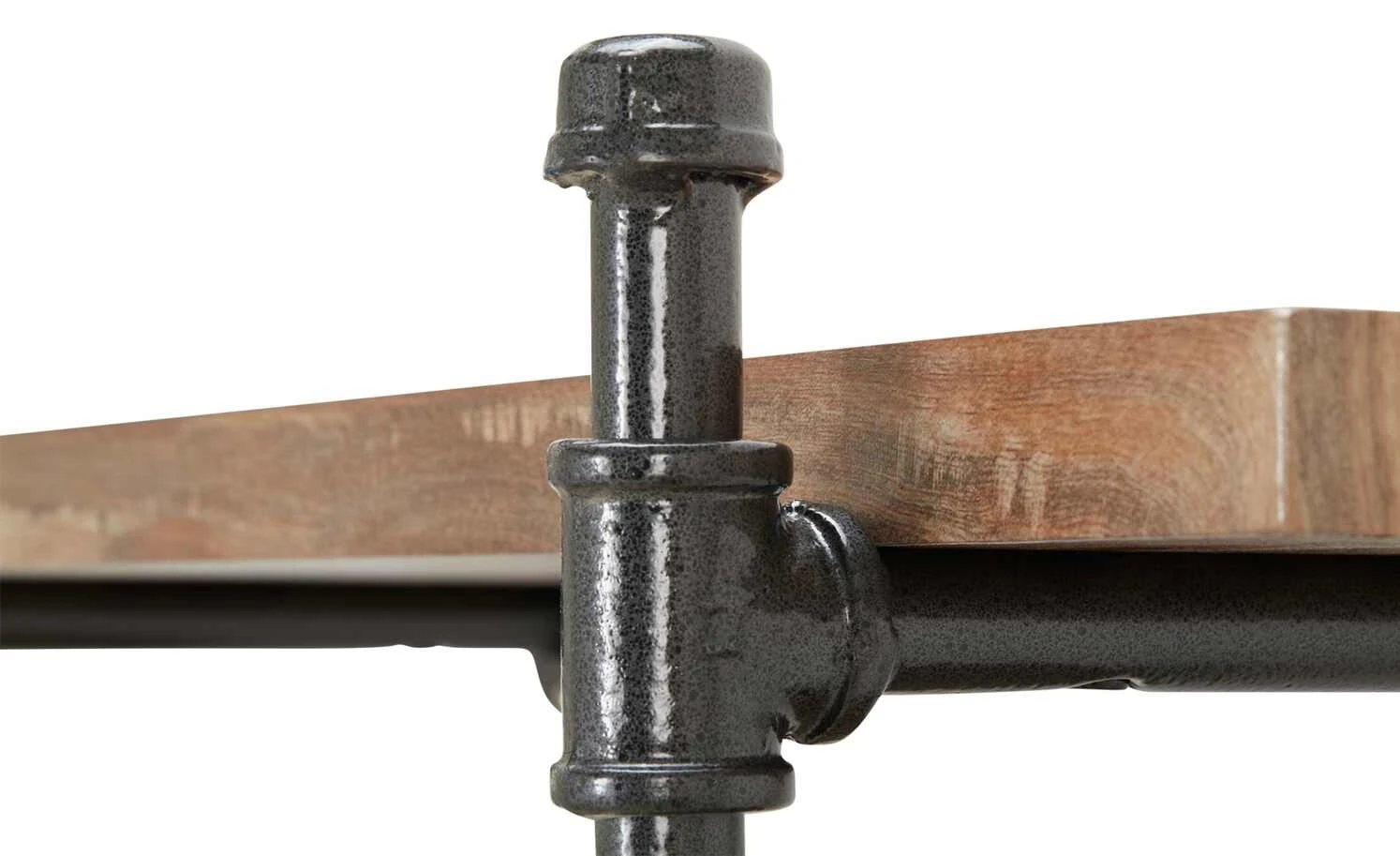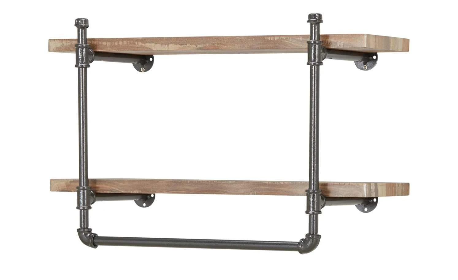 Das Wandregal Casoro ist praktisch – in erster Linie aber ein Eyecatcher für jeden Raum. Die Böden haben einen Look in verwitterter Eiche (Nachbildung). Noch auffälliger ist aber das Gestell: Es ist im Stil alter Wasserrohre designt. Dank der Lackierung in Antikschwarz mit Used-Effekten wirken die Rohre noch älter. Dank der stabilen Verarbeitung können Sie Casoro für Bücher, Deko – oder in der Küche für Geschirr nutzen.