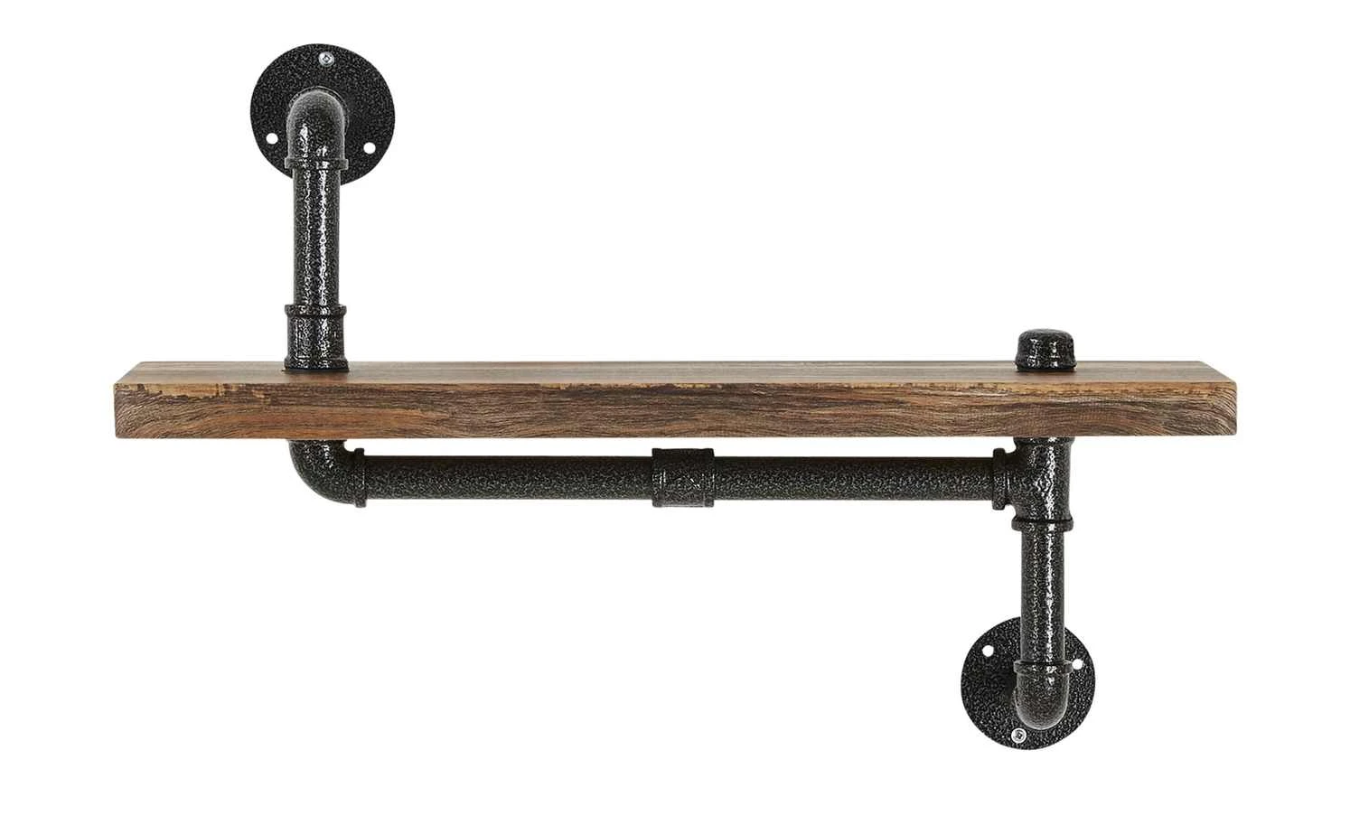 Das Wandregal Casoro ist ein Eyecatcher. Nutzen Sie es als stylischen Stellplatz für Geschirr oder im Wohnraum für Bücher. Das Regal fällt vor allem durch sein Gestell aus. Es ist aus Metall und im Look alter Wasserrohre designt. Um das außergewöhnliche Aussehen noch besser hervorzuheben, sind die Rohre in Antikschwarz lackiert und haben Used-Effekte. Auch der Regalboden sieht Vintage aus. Er hat ein Dekor in Eiche verwittert (Nachbildung).