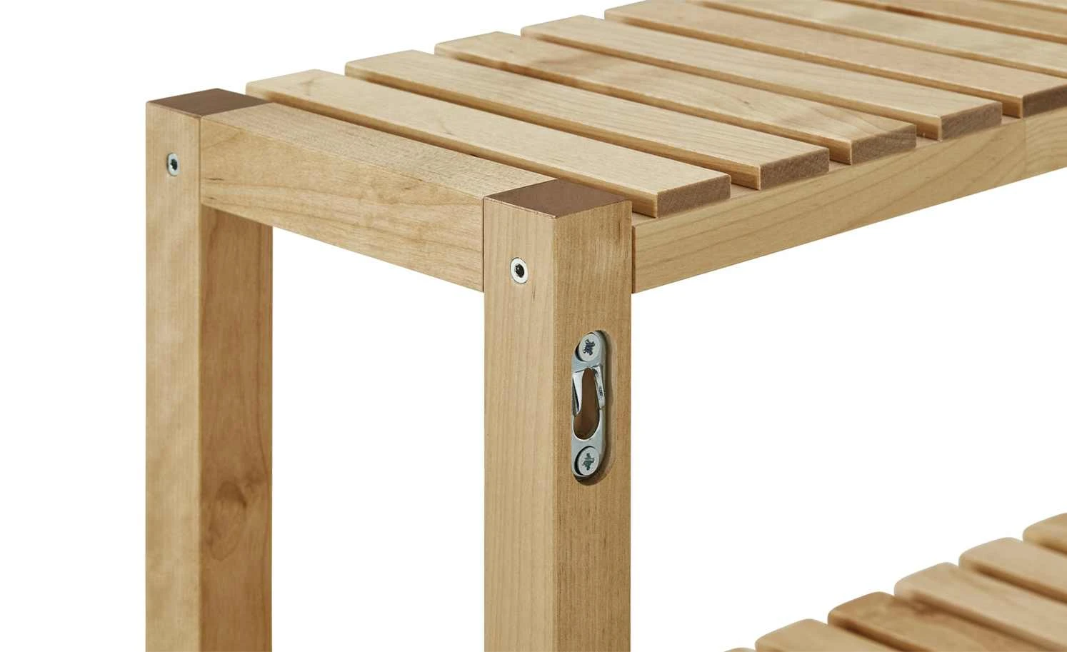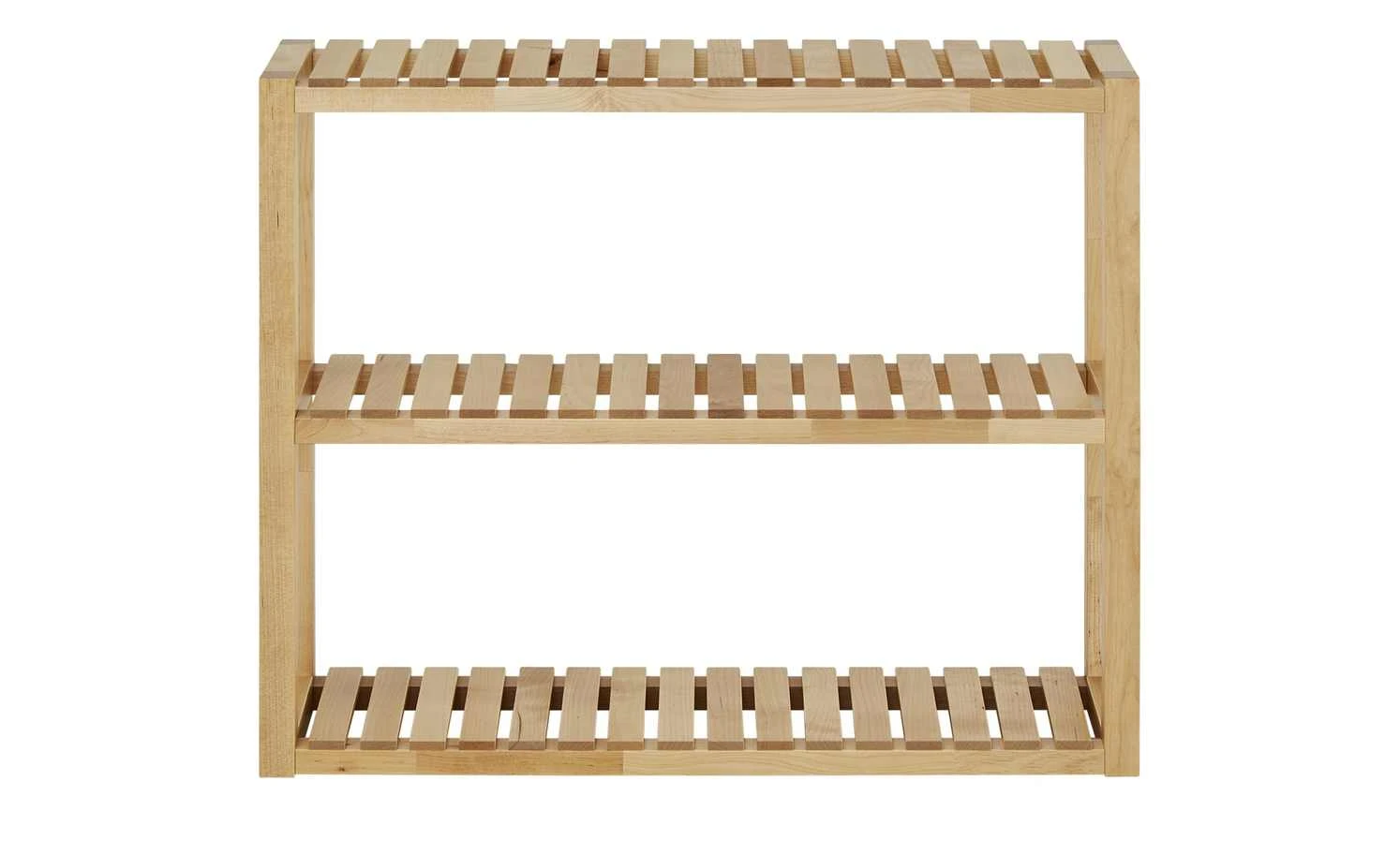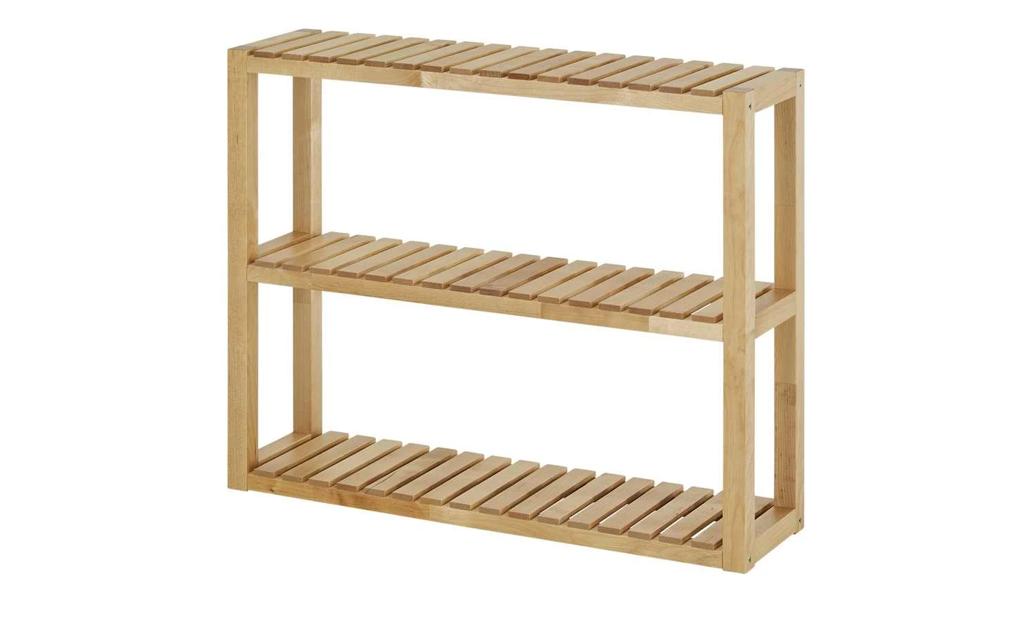 Oria ist ein schlichtes Wandregal mit natürlichem Touch. Gestell und Böden sind aus massivem Birkenholz gefertigt. Die Oberfläche ist lackiert, um das Holz besser zu schützen. Die drei Ablageflächen Böden haben eine luftig gestaltete Holzlattenoptik.