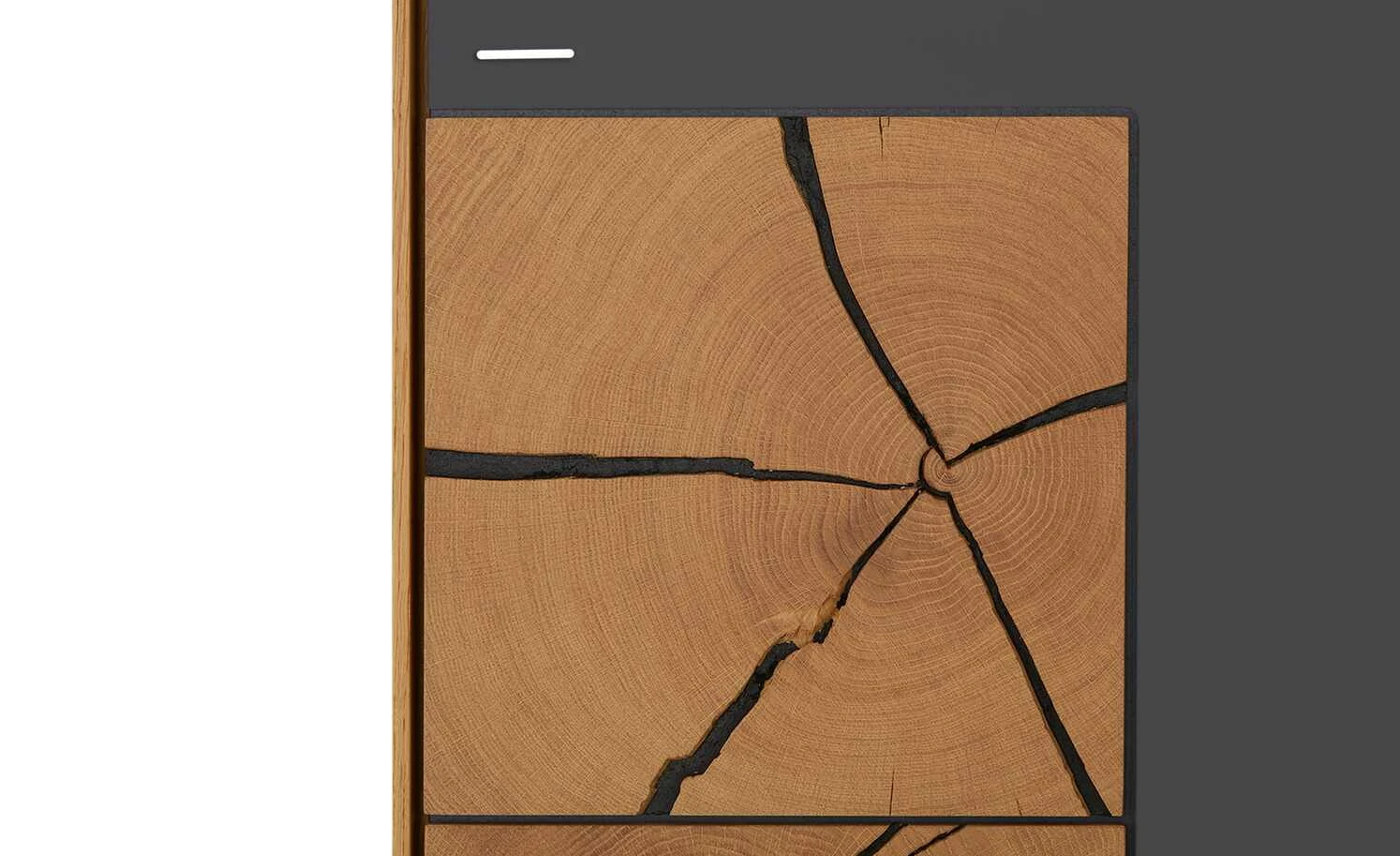 - Mehr zum Material: Korpus und Front-Applikationen aus Massivholz, Kerneiche Umato, gebürstet, Fronten aus Mattglas