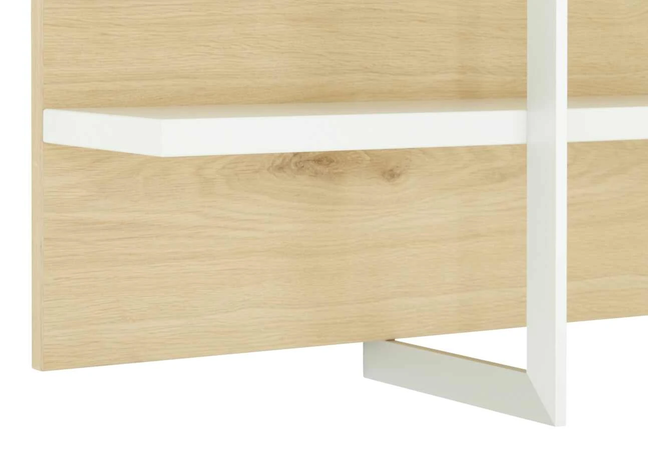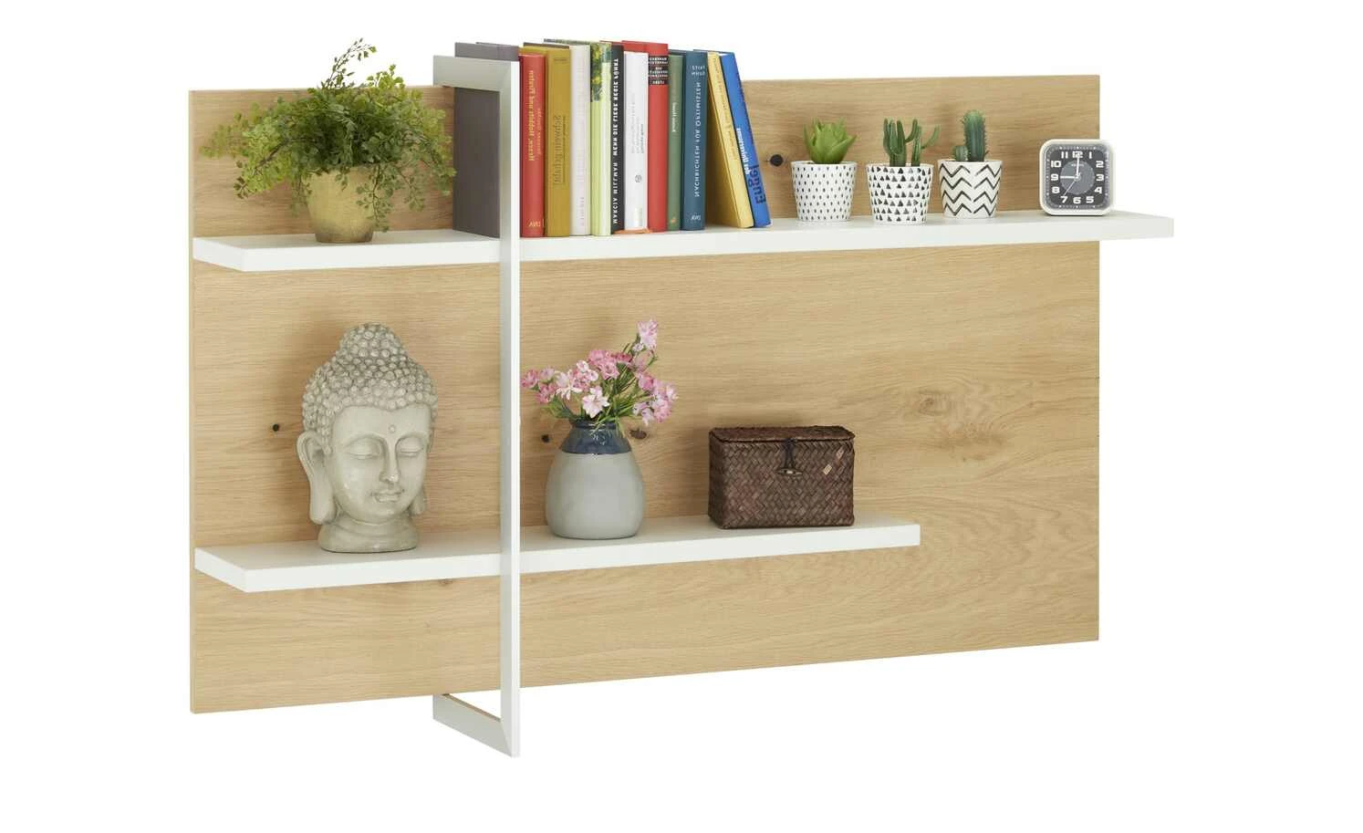 - Mehr zum Material: Paneel aus Holzwerkstoff furniert in Wildeiche hell , Böden und Designspange aus Holzwerkstoff in Polar Weiß matt lackiert