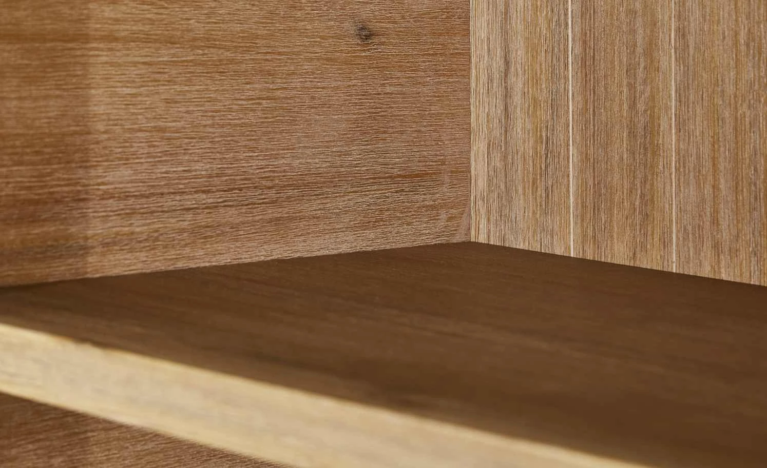 - Mehr zum Material: Korpus und Front aus Akazie massiv sandfarben gebeizt und lackiert, Seiten aus Akazie furniert sandfarben gebeizt und lackiert