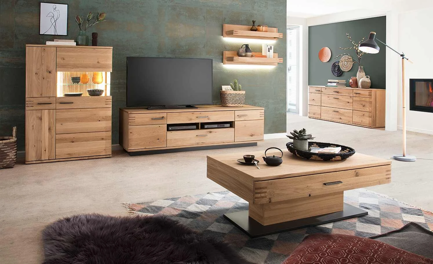 - Material Ablageboard: Massivholz, Holzwerkstoff furniert